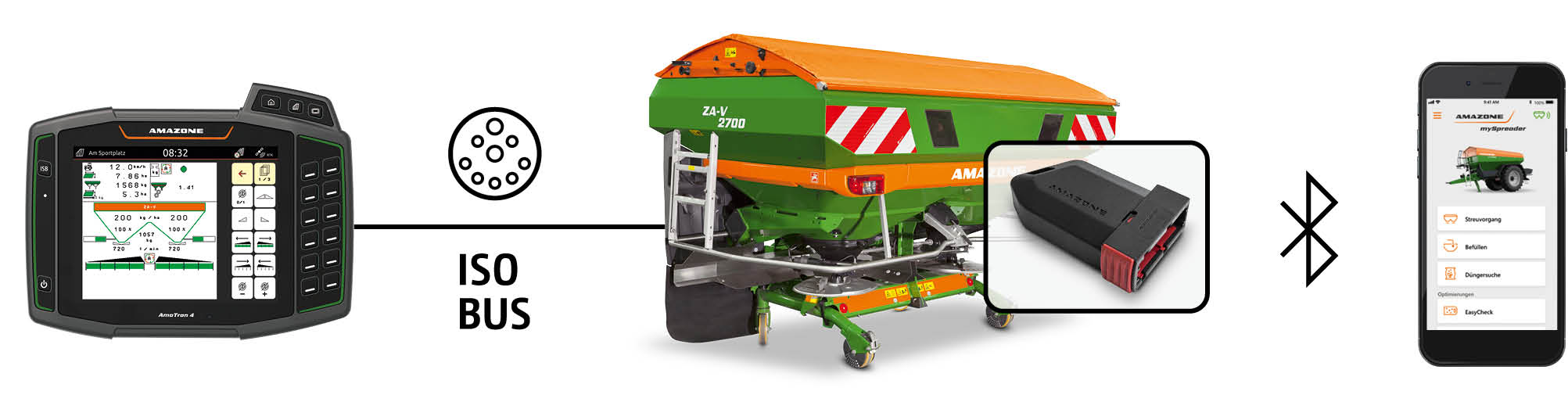 Con amplias funciones, como la ayuda a la calibración, Easy-Check, EasyMix y la conexión vía Bluetooth, la aplicación mySpreader se convierte en un útil gestor para su abonadora.