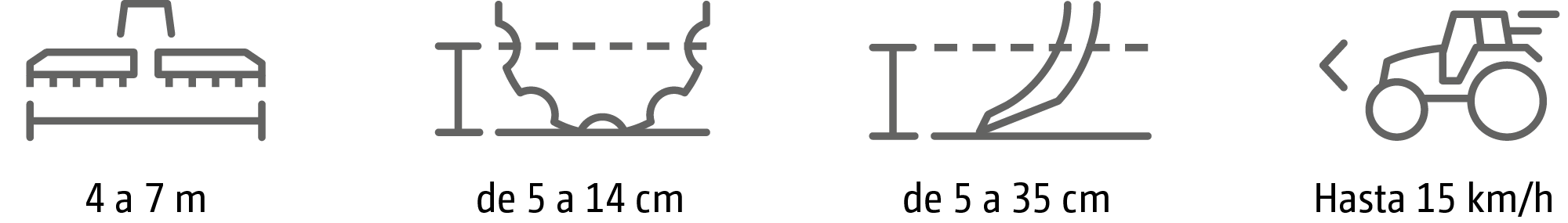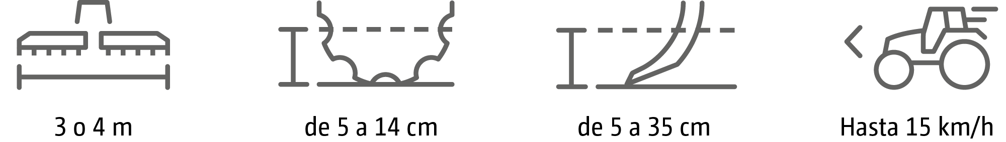 - Control preciso de la profundidad mediante lanza y rodillo de arrastre o ruedas de apoyo adicionales para anchos de trabajo a partir de 6 m