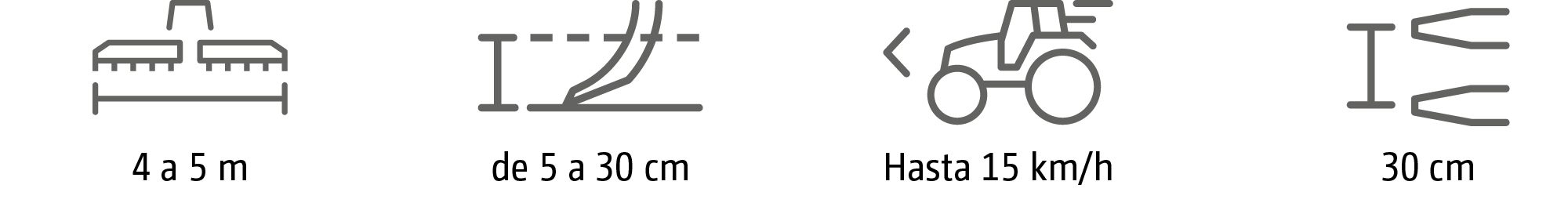 - Gracias a su gran maniobrabilidad y a su rápido plegado, el cambio de campo se realiza sin esfuerzo, lo que lo hace ideal para explotaciones medianas y grandes con estructuras de superficie reducidas