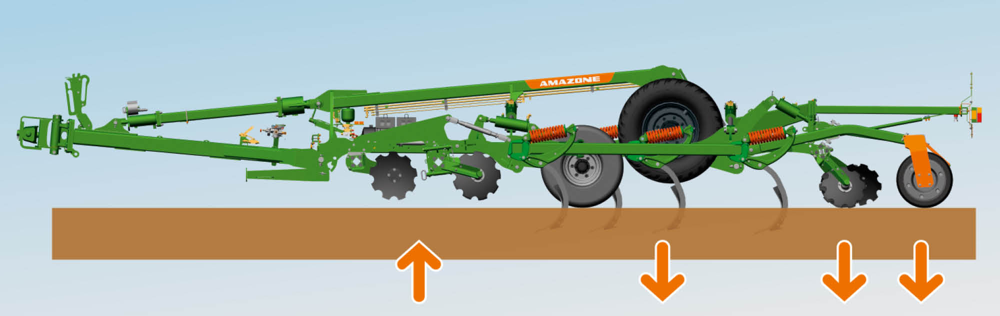 El Ceus es una máquina universal para las labores del suelo. El sistema Ceus es diferente de un cultivador ordinario. Comparando ambos equipos, el Ceus muestra su fortaleza especialmente en la mezcla intensiva. Especialmente en terrenos con mucha materia orgánica, el cuerpo de discos delantero ayuda a la distribución y la mezcla. Incluso con una descompactación profunda, la agilidad de un Ceus convence gracias a la mayor distancia entre líneas. Gracias al cuerpo de discos delantero, el Ceus se las arregla con una mayor distancia entre líneas de las púas sin tener que renunciar a una mezcla intensiva.