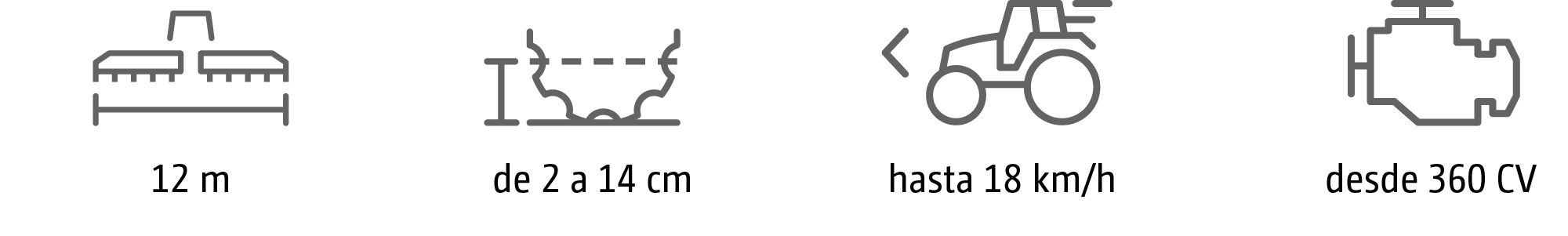 Con un ancho de trabajo de 12 m para el máximo rendimiento
