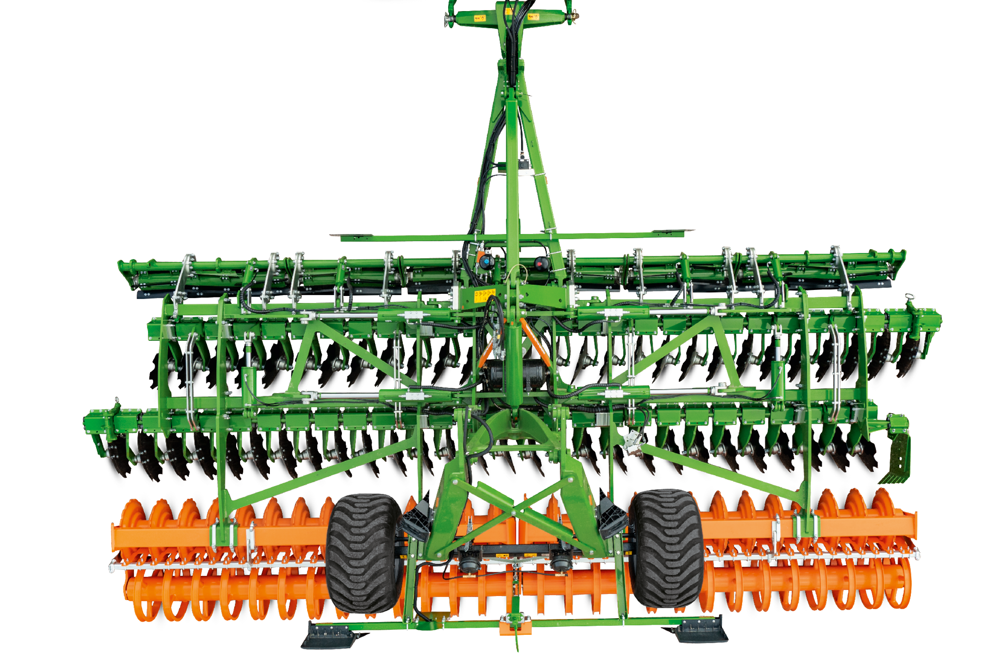 El equipamiento básico de las máquinas remolcadas Catros-2TS con anchos de trabajo de 4 hasta 7 m incluye el tren de rodaje oscilante situado detrás de la máquina. El peso del tren de rodaje se puede aprovechar para conseguir una mejor penetración en suelos pesados. Además, el tren de rodaje TS puede actuar como amortiguador de oscilaciones en condiciones extremas. Sin embargo, no se necesita para girar en la cabecera. La máquina puede girar sin problemas sobre el rodillo.