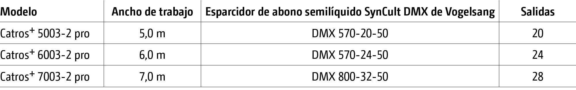 Las Catros pro pueden combinarse con el esparcidor de abono semilíquido SynCult DosiMat DMX de la marca Vogelsang. Este se caracteriza por altas dosis de aplicación de hasta 10 000 l/min y una elevada precisión de distribución constante independientemente del caudal. En el bastidor adaptador van montados de manera fija el esparcidor y las tuberías del sistema del abono semilíquido hasta la primera fila de discos de la Catros. AMAZONE instala el distribuidor de abono semilíquido y el entubado directamente de fábrica.