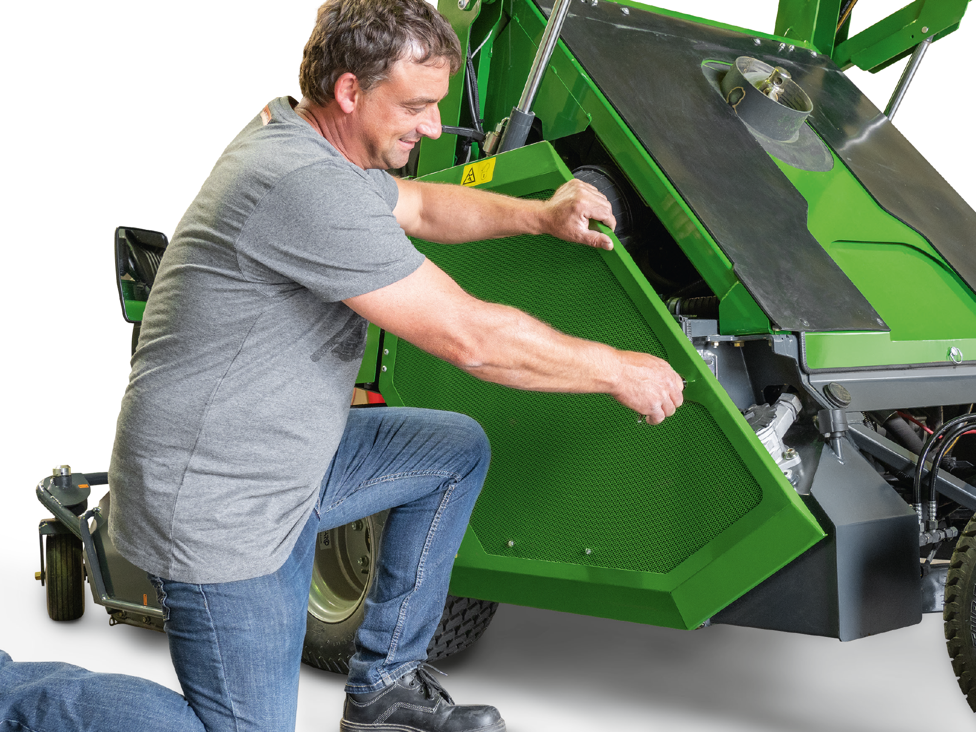 A fin de reducir todo lo posible los trabajos de mantenimiento y cuidado y de que no resulten farragosos, se ha prestado atención a que la Profihopper permita un acceso muy sencillo. Gracias a sus trampillas de mantenimiento de gran tamaño, se llega directamente a todos los componentes que requieren mantenimiento o cuidados.
