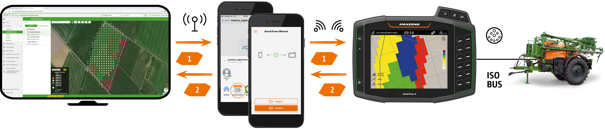 Con el control automático de anchos parciales GPS-Switch, AMAZONE ofrece un control de anchos parciales totalmente automático y basado en GPS para todos los terminales de mando AMAZONE y las abonadoras, pulverizadores de protección de cultivos o sembradoras compatibles con ISOBUS.