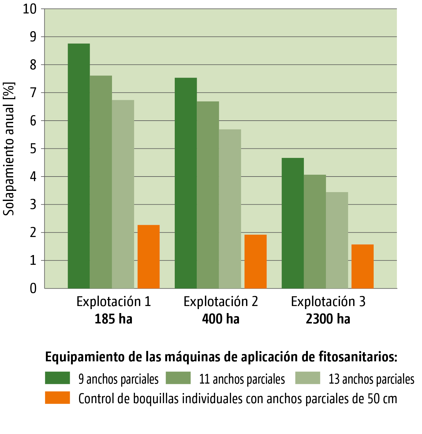 Solapamiento anual medio de los anchos parciales convencionales frente a los anchos parciales de 50 cm en combinación con Section Control