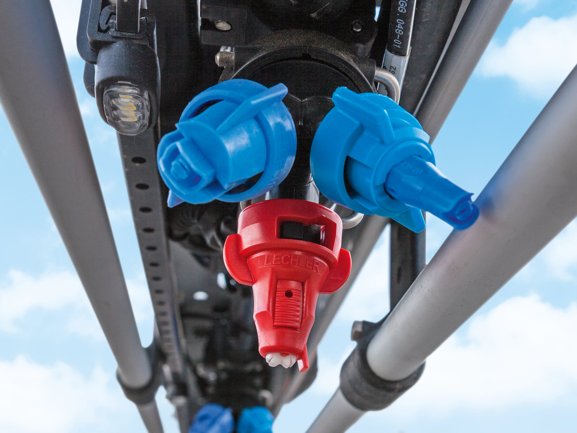 El control eléctrico de boquillas individuales AmaSelect consta de un cuerpo de boquilla cuádruple con conexión y desconexión eléctrica y conmutación adicional de las boquillas. De este modo, el sistema, además del ancho parcial de 50 cm, que se puede conmutar automáticamente con el GPS Switch, permite la conmutación eléctrica entre las cuatro boquillas montadas desde el terminal de mando o, incluso, de forma completamente automática cuando se cambia la velocidad de marcha o la dosis de aplicación. De este modo, por ejemplo, cuando se sobrepasa el rango de presión óptimo de una boquilla, existe la posibilidad de conectar una segunda boquilla o de conmutar a otra de mayor tamaño.