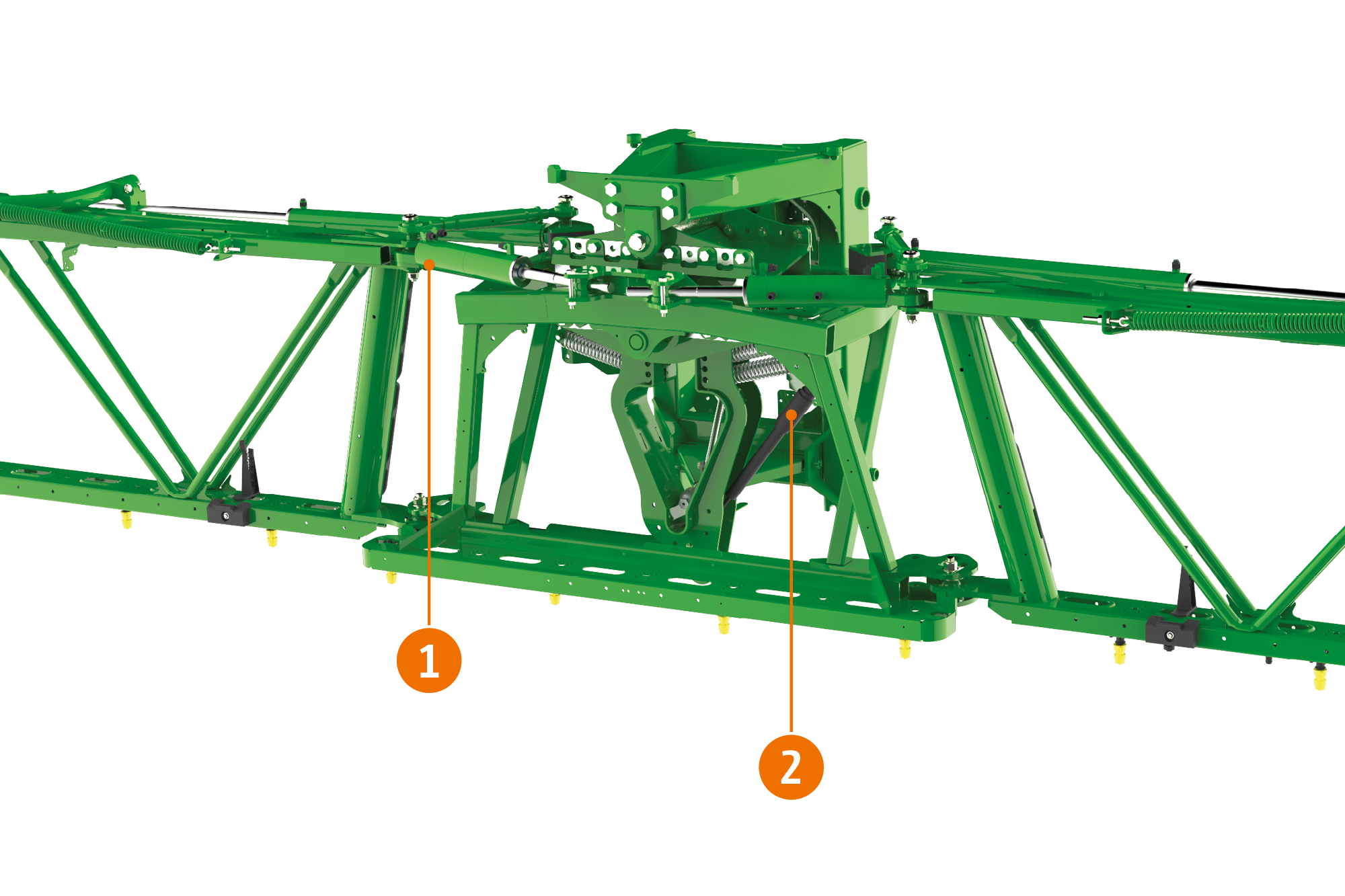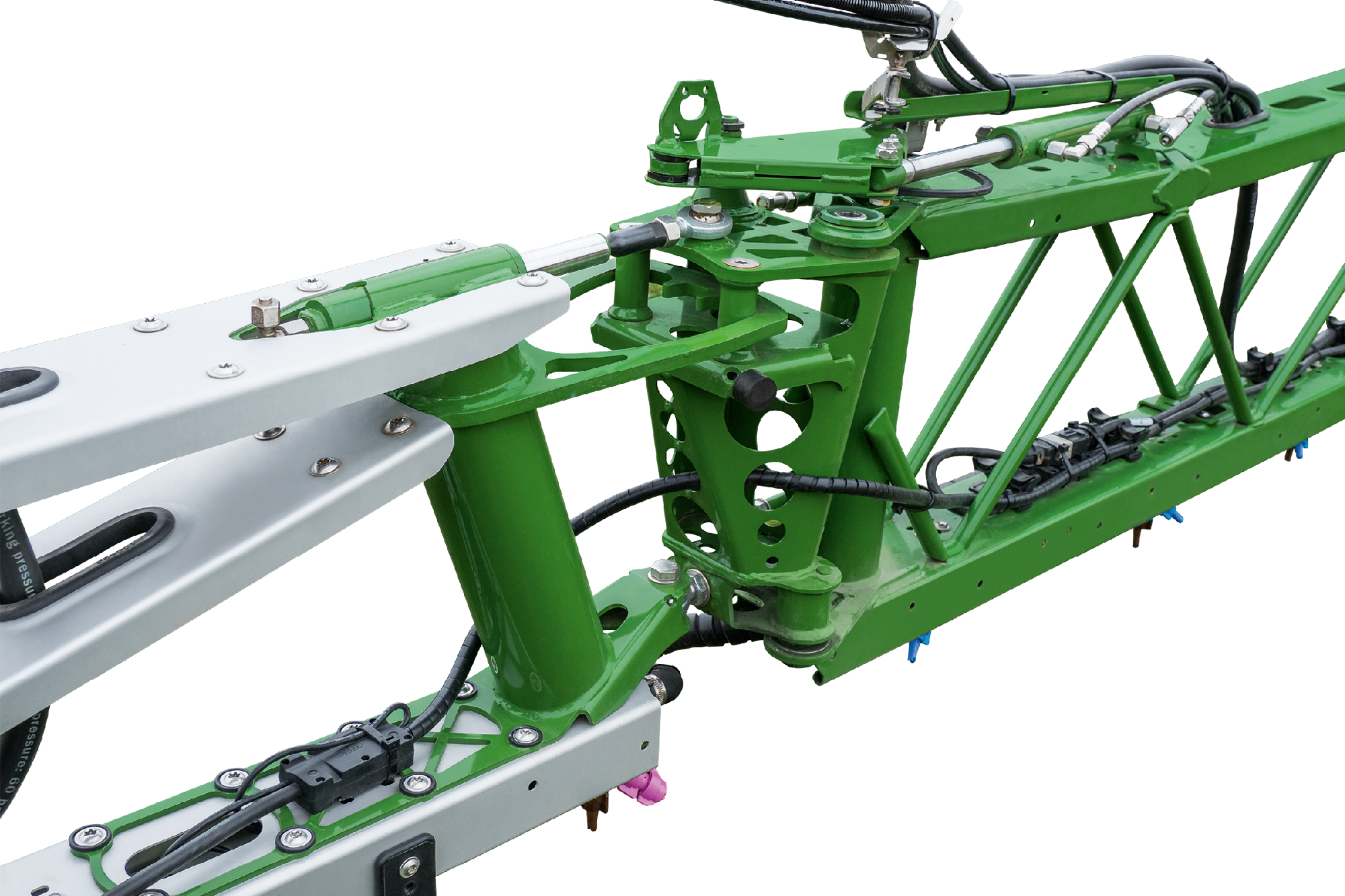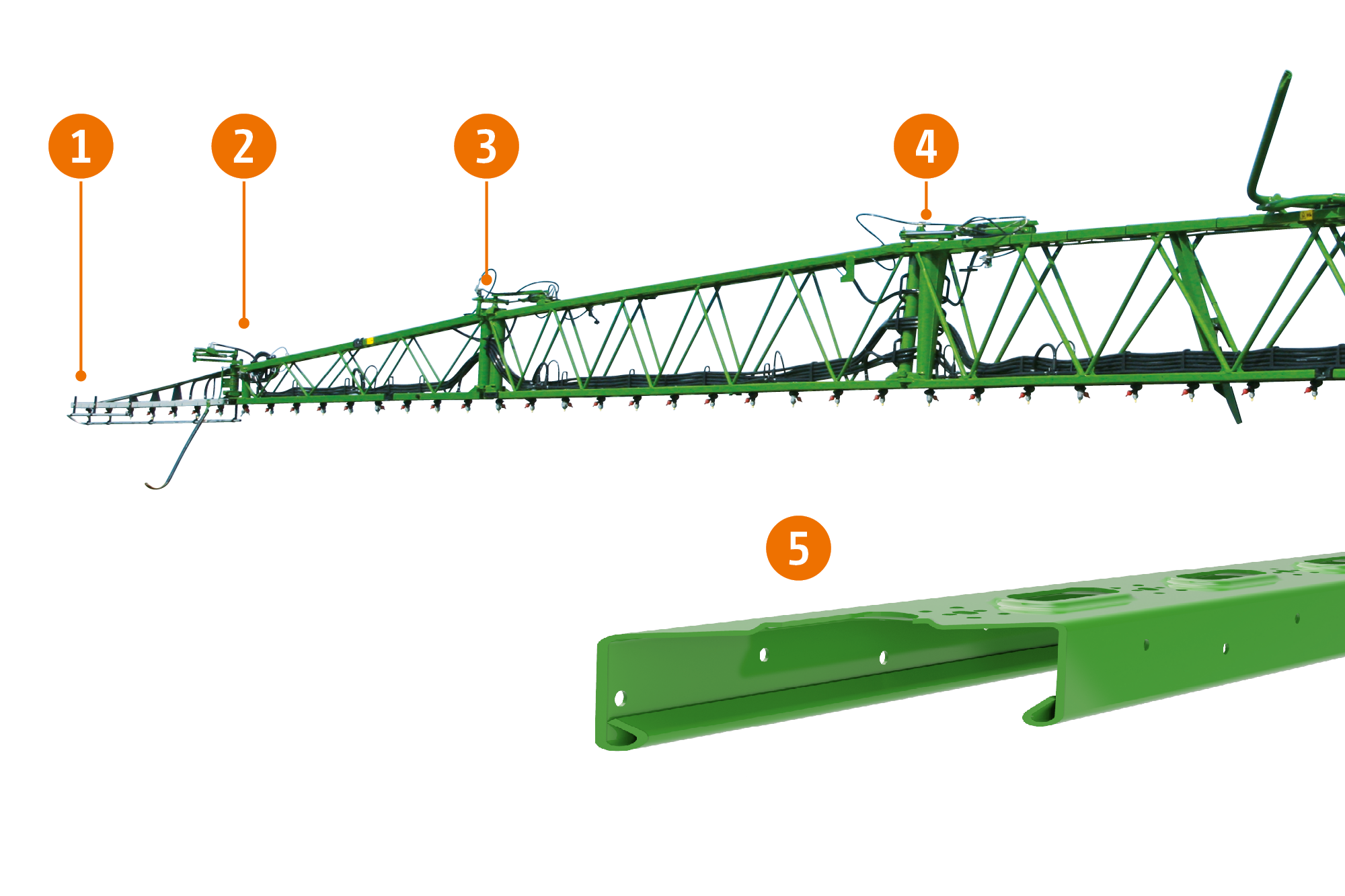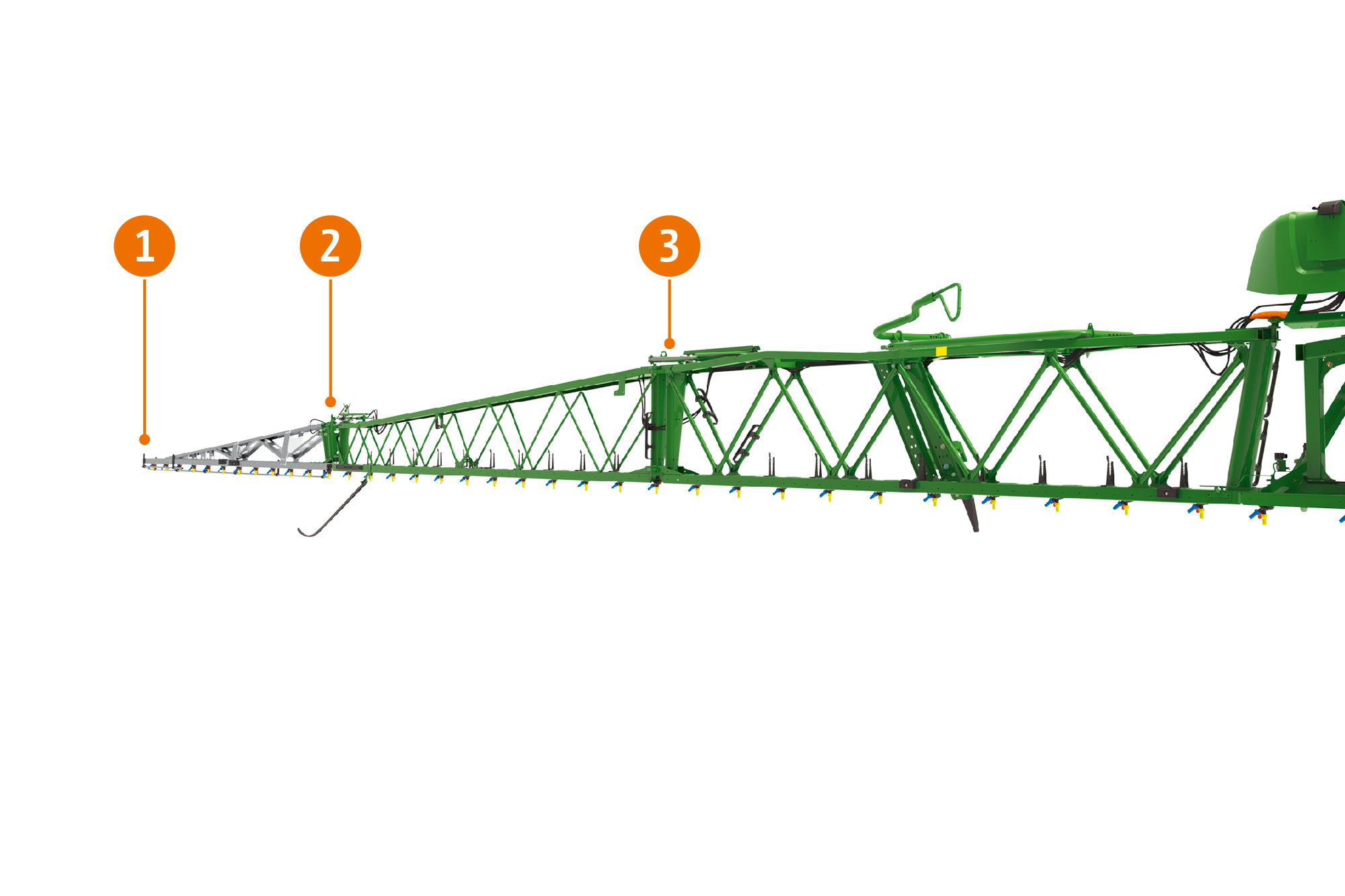 Con el elevador automático de la barra AutoLift (equipamiento de serie), la barra se eleva a la altura deseada cada vez que se desconectan las boquillas. Cuando se inicia la pulverización, baja de nuevo a la altura objetivo. Esto evita el riesgo de dañar las barras de pulverización en la cabecera.