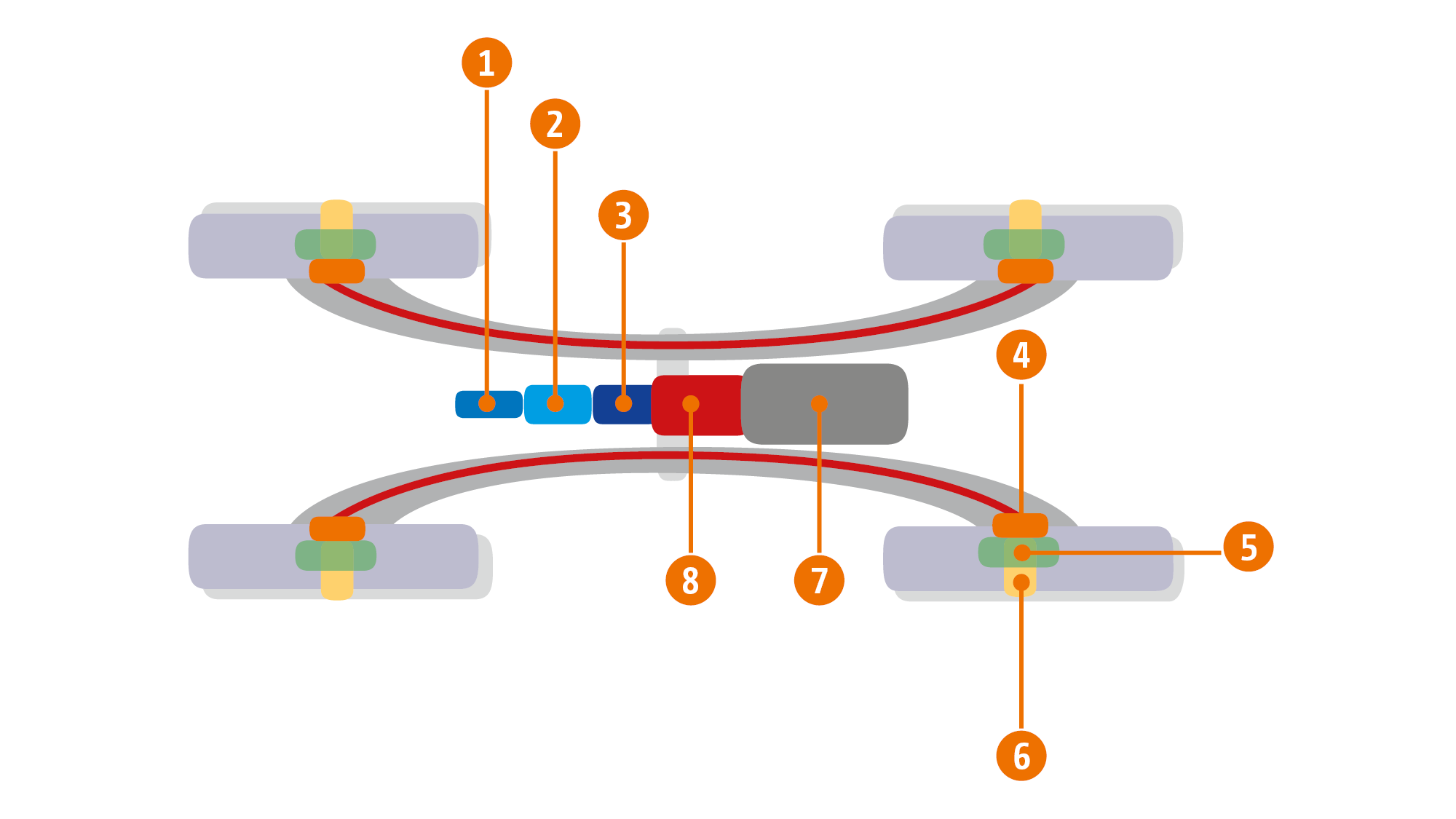 • Una reducción fija en el engranaje planetario acciona la rueda