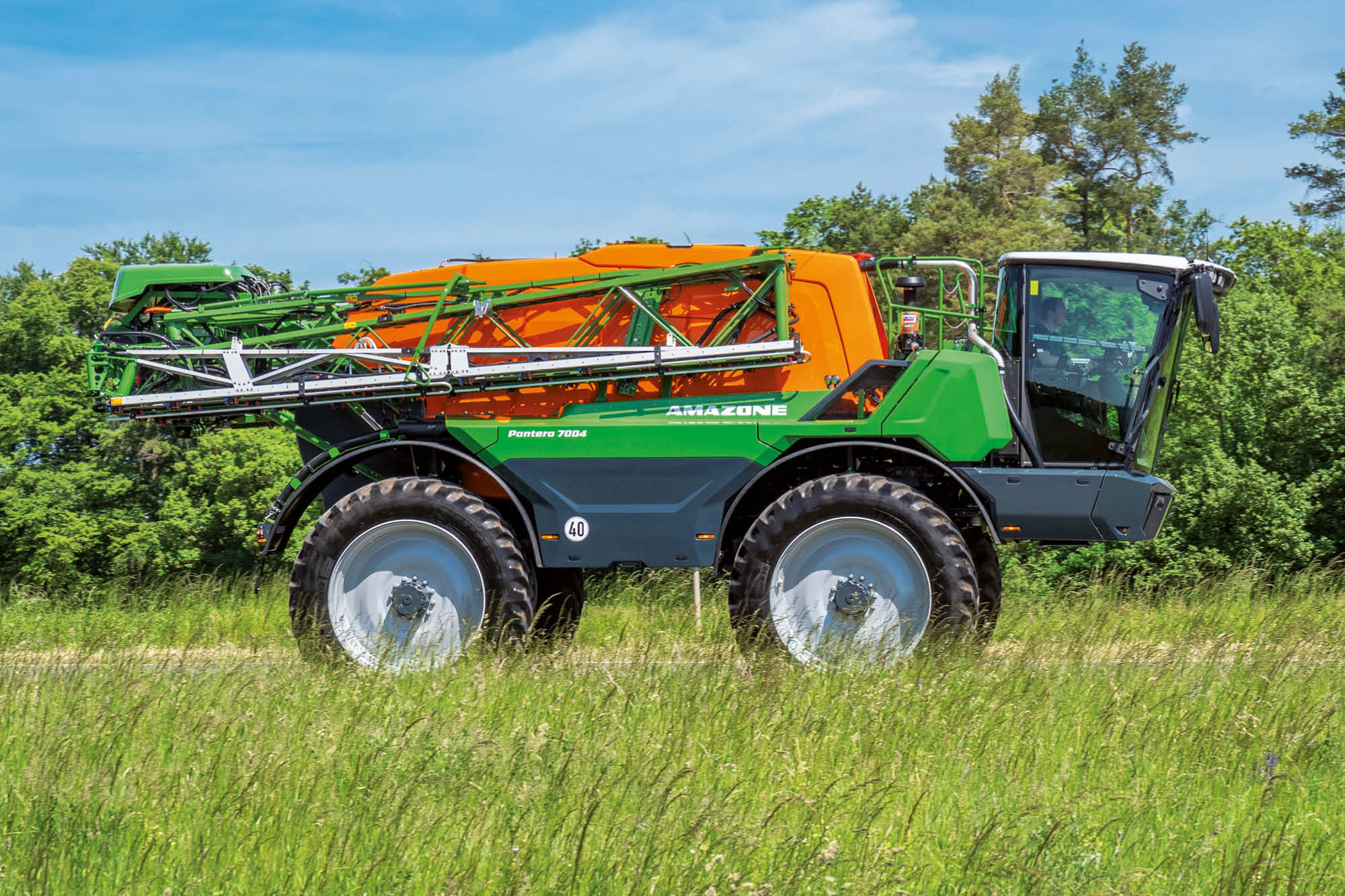 Obviamente, el bajo peso propio del Pantera 4504 (9900 kg con un ancho de trabajo de 24 metros) supone también una ventaja en términos de bajo consumo de combustible. Con una capacidad del depósito de 290 litros, se pueden alcanzar altos rendimientos por hectárea en largas jornadas de trabajo.
