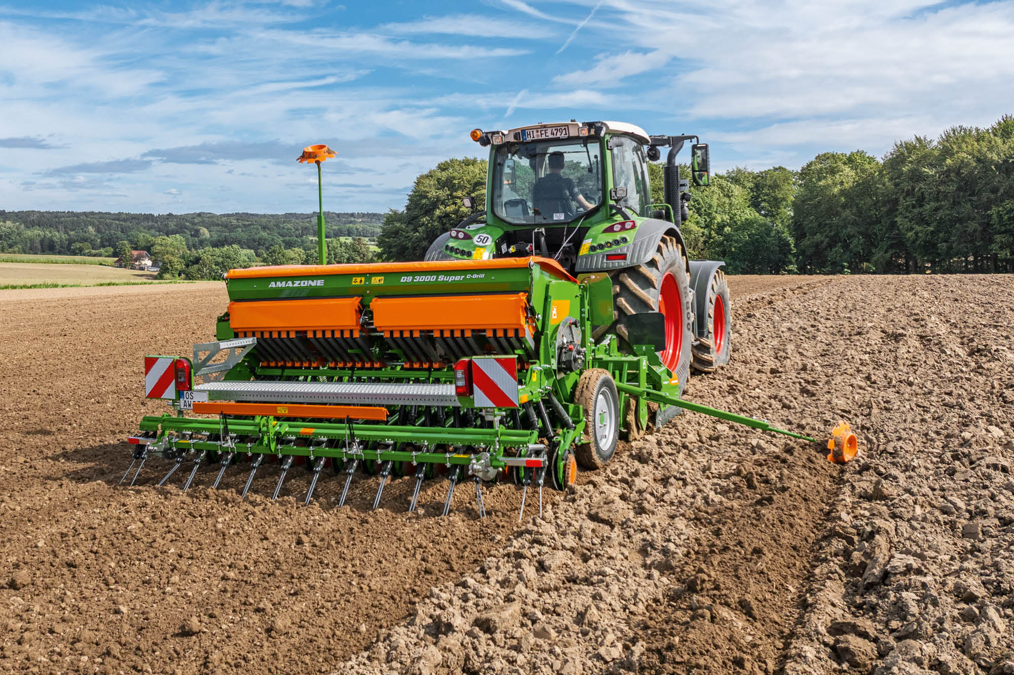 Por este motivo, AMAZONE ofrece el C-Drill, un sistema de abonado reequipable con una capacidad del depósito de 322 l para la D9 3000 Super y de 450 l para la D9 4000 Super. El depósito de abono del C-Drill se monta en el exterior del depósito de semillas de la D9.