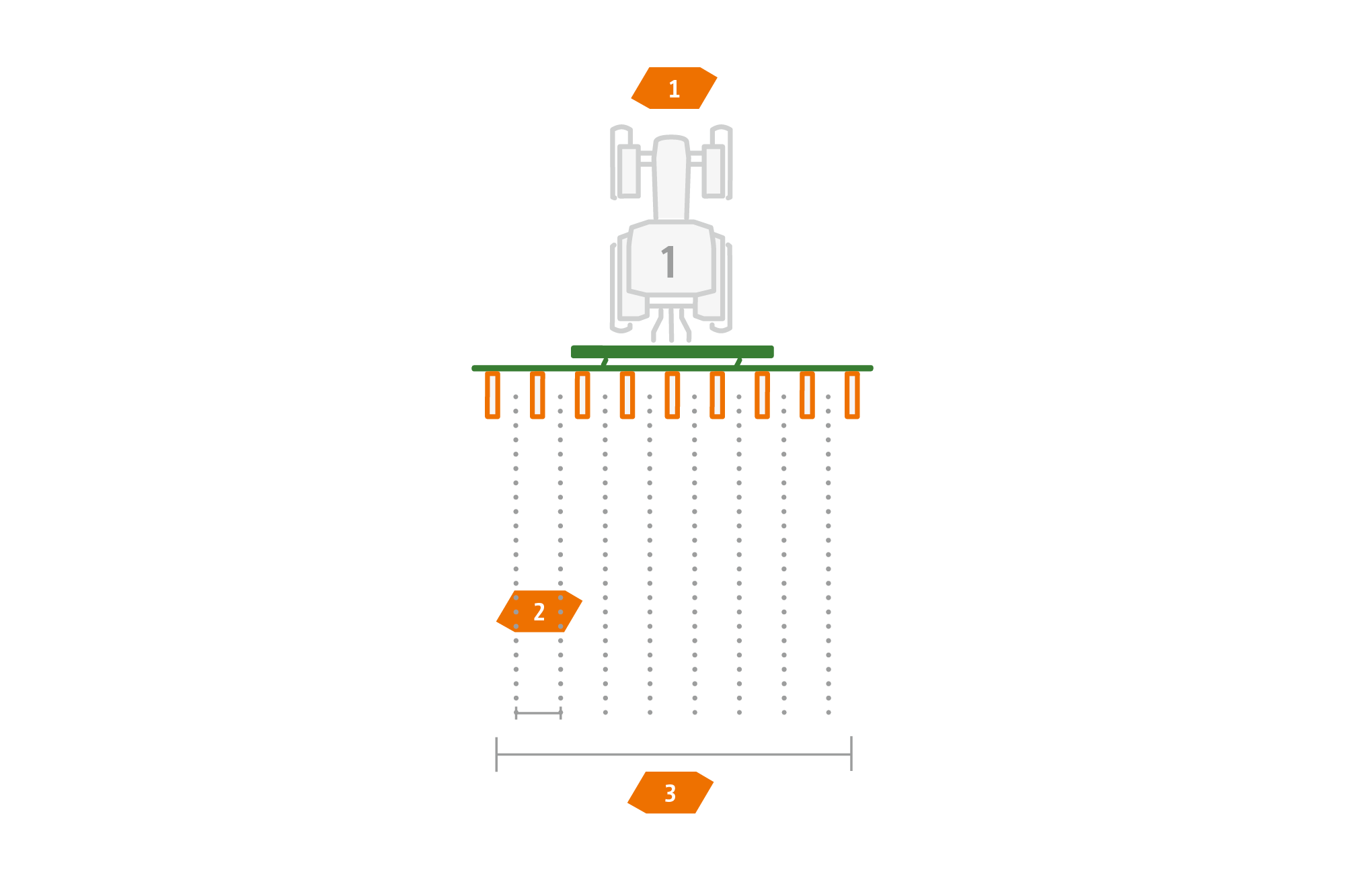 Distancia entre hileras de 75 cm y anchos de siembra de 6 m o 6,75 m