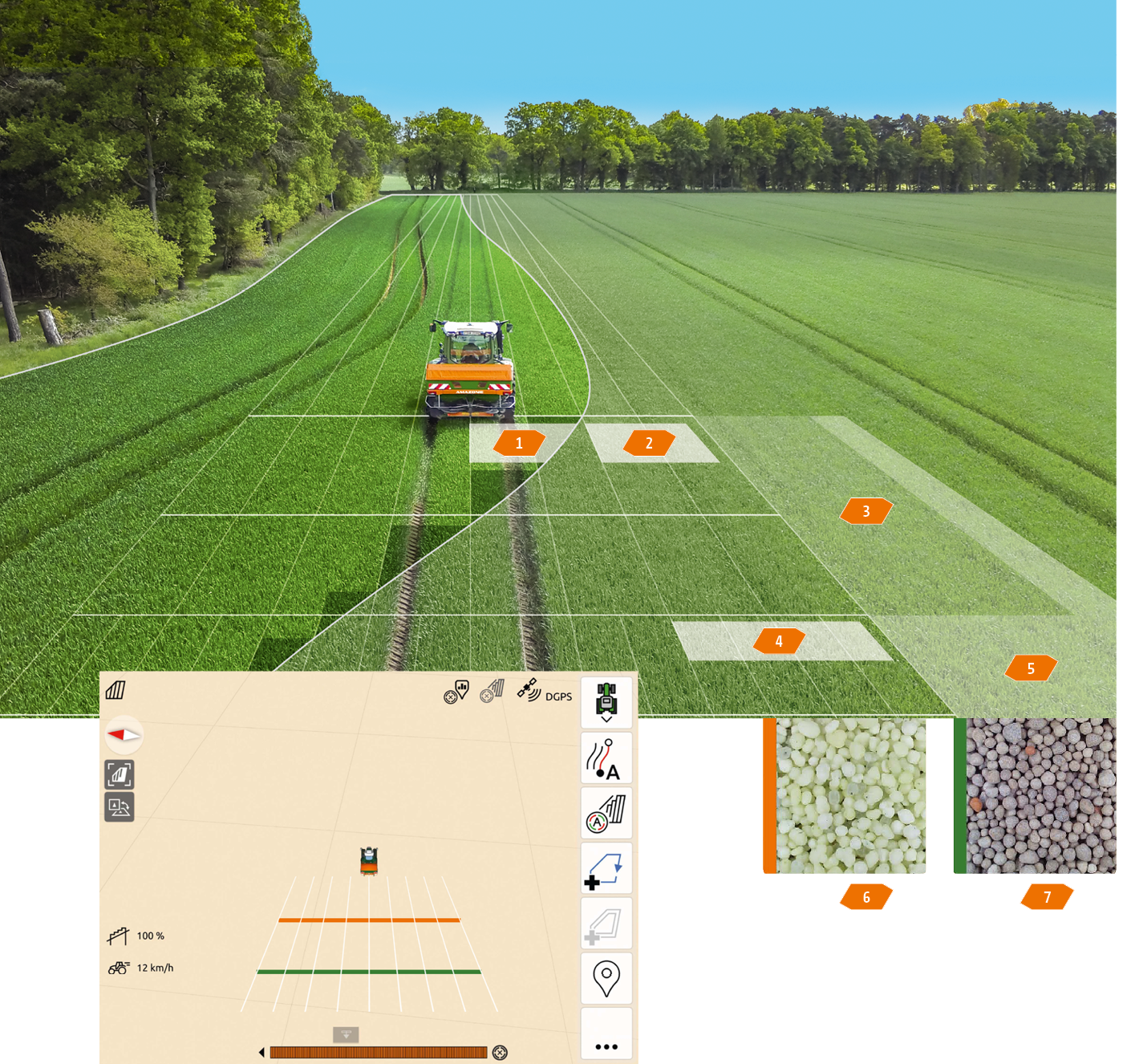 Con el control automático de anchos parciales GPS Switch, AMAZONE ofrece un control de anchos parciales totalmente automático y basado en GPS para todos los terminales de mando AMAZONE y las abonadoras, pulverizadores de protección de cultivos o sembradoras compatibles con ISOBUS.