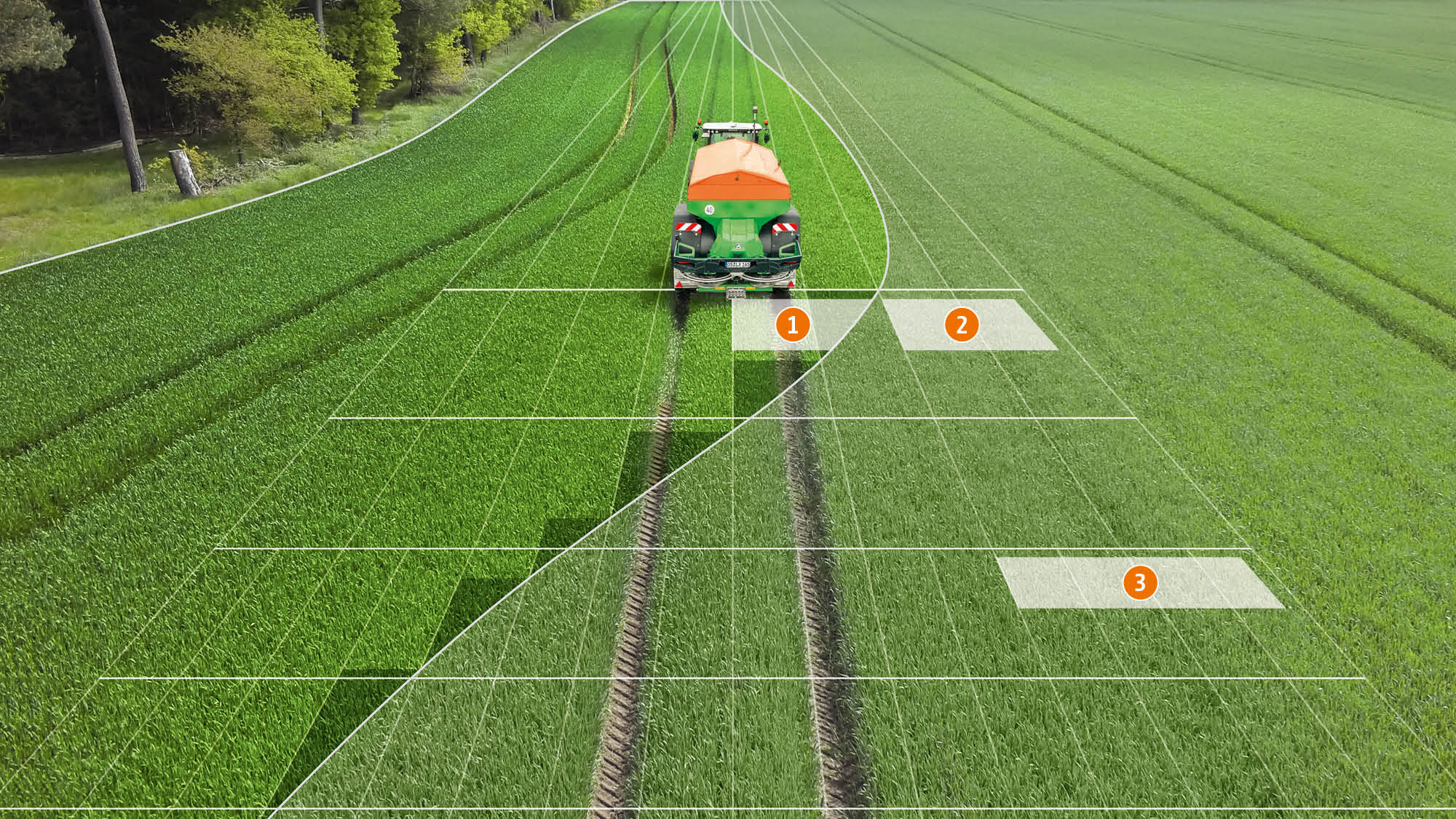 Si el terminal de mando está equipado con la función Section Control, como p. ej. en el caso del control de anchos parciales GPS Switch de AMAZONE, los anchos parciales se pueden conmutar de forma completamente automática y en función de la posición GPS. Si se ha trazado una parcela, el operador puede concentrarse por completo en el manejo del vehículo en modo automático, ya que la conmutación de los anchos parciales tiene lugar de forma automática en las cuñas y en la cabecera.