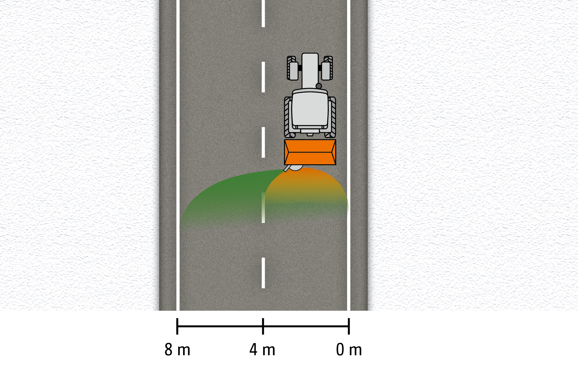 Le capteur radar FlowCheck pour l’IceTiger, piloté ISOBUS, doté d’une capacité de trémie minimale de 1 000 l, permet une détection précoce des bourrages. Un message sur le terminal ISOBUS indique immédiatement à l’utilisateur la présence de bourrages, notamment à la suite de l'utilisation de sel humide compacté.
