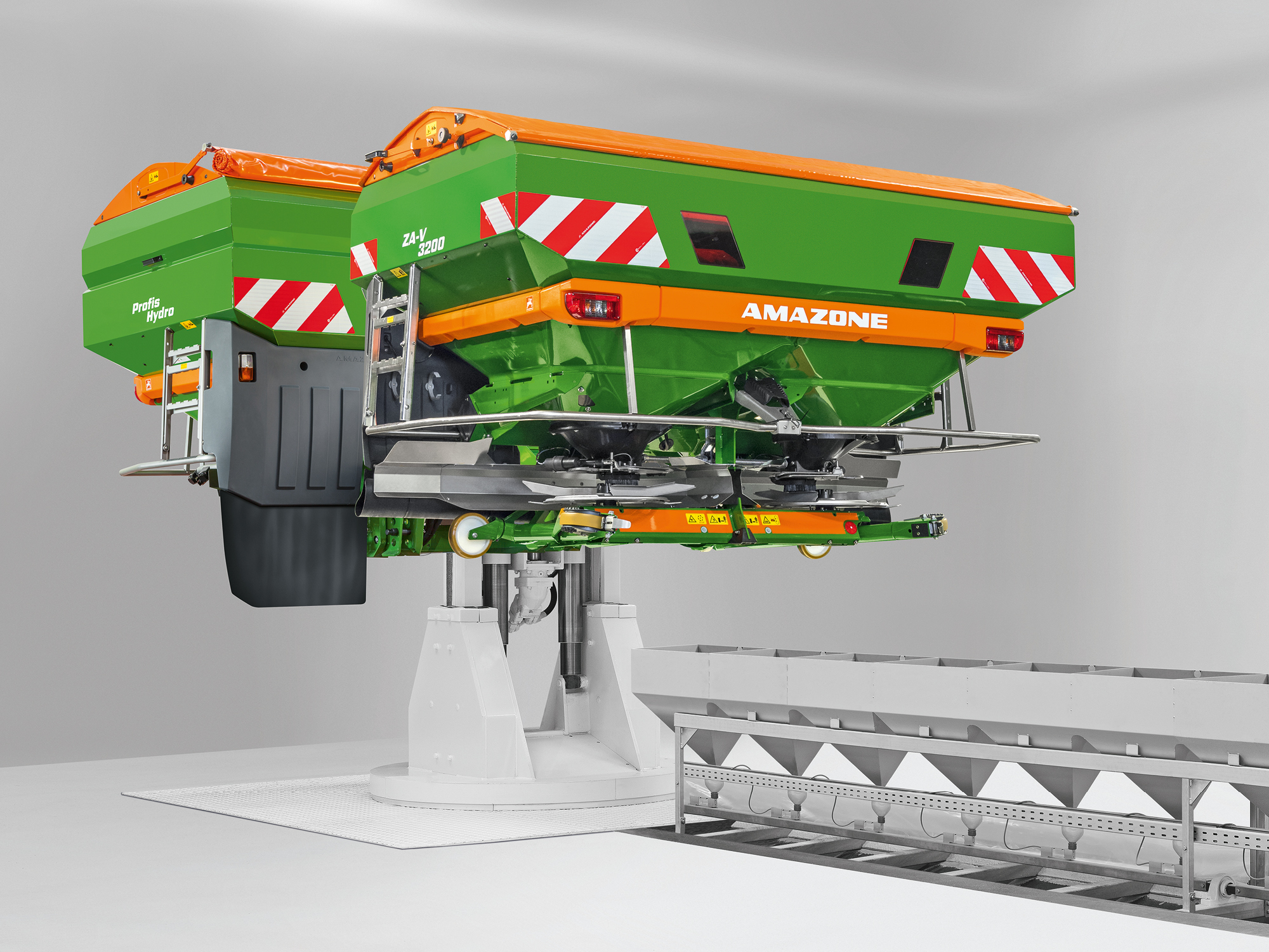 L'objectif est d'optimiser la précision de la répartition transversale et de la quantité quelles que soient les conditions et pour tous les engrais, afin d'accompagner nos clients de manière optimale - et ce depuis 1950, date des premiers essais d'épandage manuels. Aujourd'hui, des largeurs de travail jusqu'à 72 m peuvent être testées dans l'un des halls d'épandage les plus modernes au monde et analysées numériquement à l'aide de notre propre logiciel. Nous proposons également à nos clients d'analyser leurs échantillons d'engrais (5 kg) afin de leur fournir des recommandations individuelles sur les réglages optimaux de l'épandeur et les schémas d'épandage de leurs propres échantillons d'engrais. Les recommandations peuvent être lues directement par code QR dans l'application mySpreader et utilisées immédiatement pour régler votre épandeur d'engrais.
