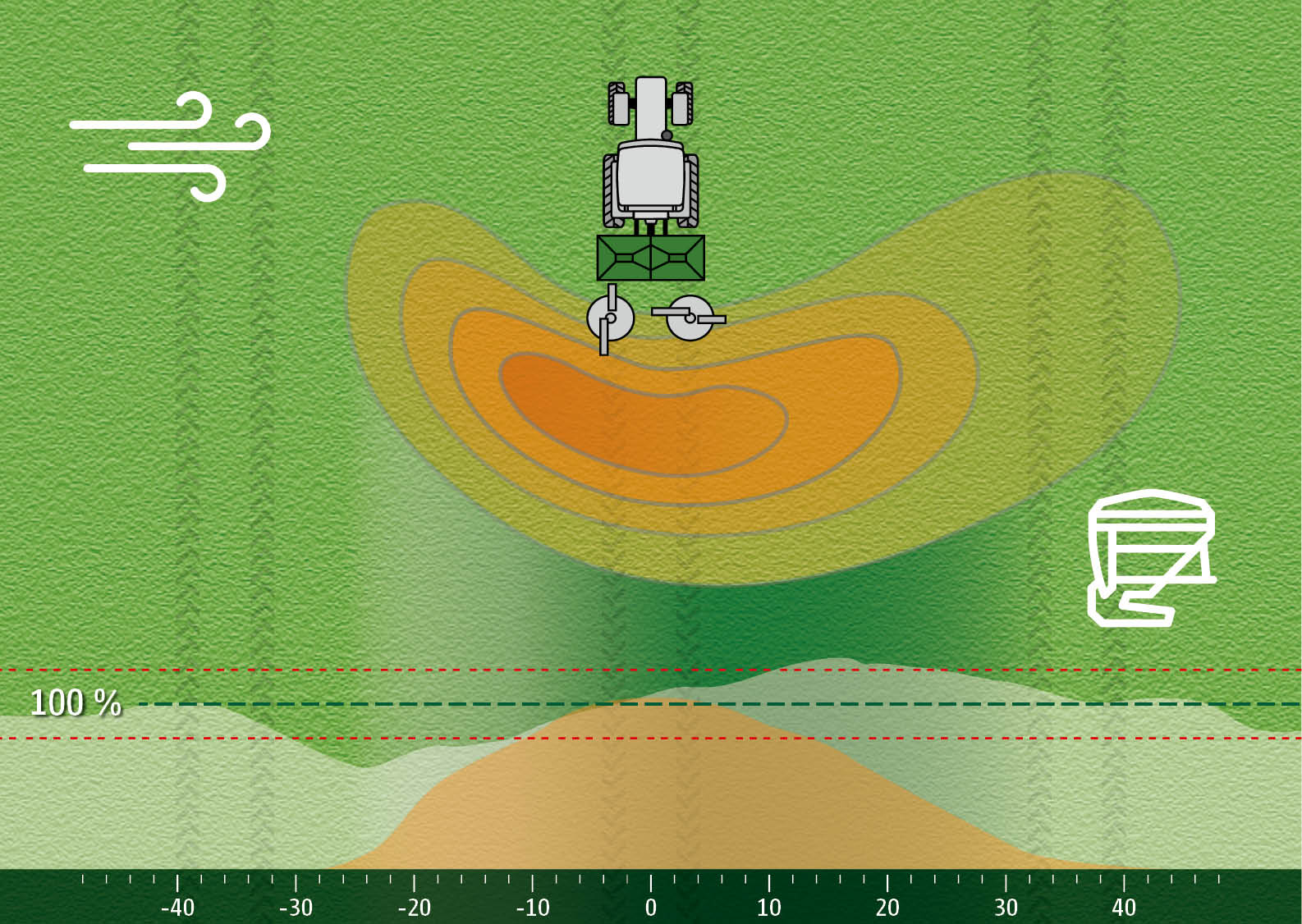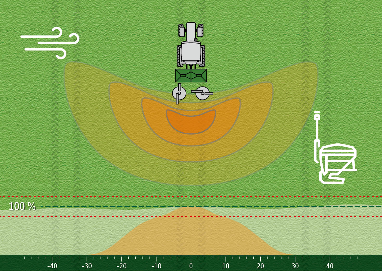 Lors de l’épandage d’engrais, le conducteur est confronté à différentes tâches. Il doit d’une part garantir une répartition transversale de l’engrais et un épandage de l’engrais adapté aux besoins. D’autre part, il doit s’assurer d’utiliser le procédé d’épandage en bordure adéquat au niveau des fossés, des chemins ou des limites de champs, afin de garantir une fertilisation précise et conforme à la législation. Il y a toujours des risques d’erreurs d’application, en particulier en cas de changement de conducteur, si un certain procédé d’épandage en bordure n'est pas activé ou désactivé au bon endroit. L'ignorance du conducteur peut également conduire à un épandage d'engrais non conforme à la législation.