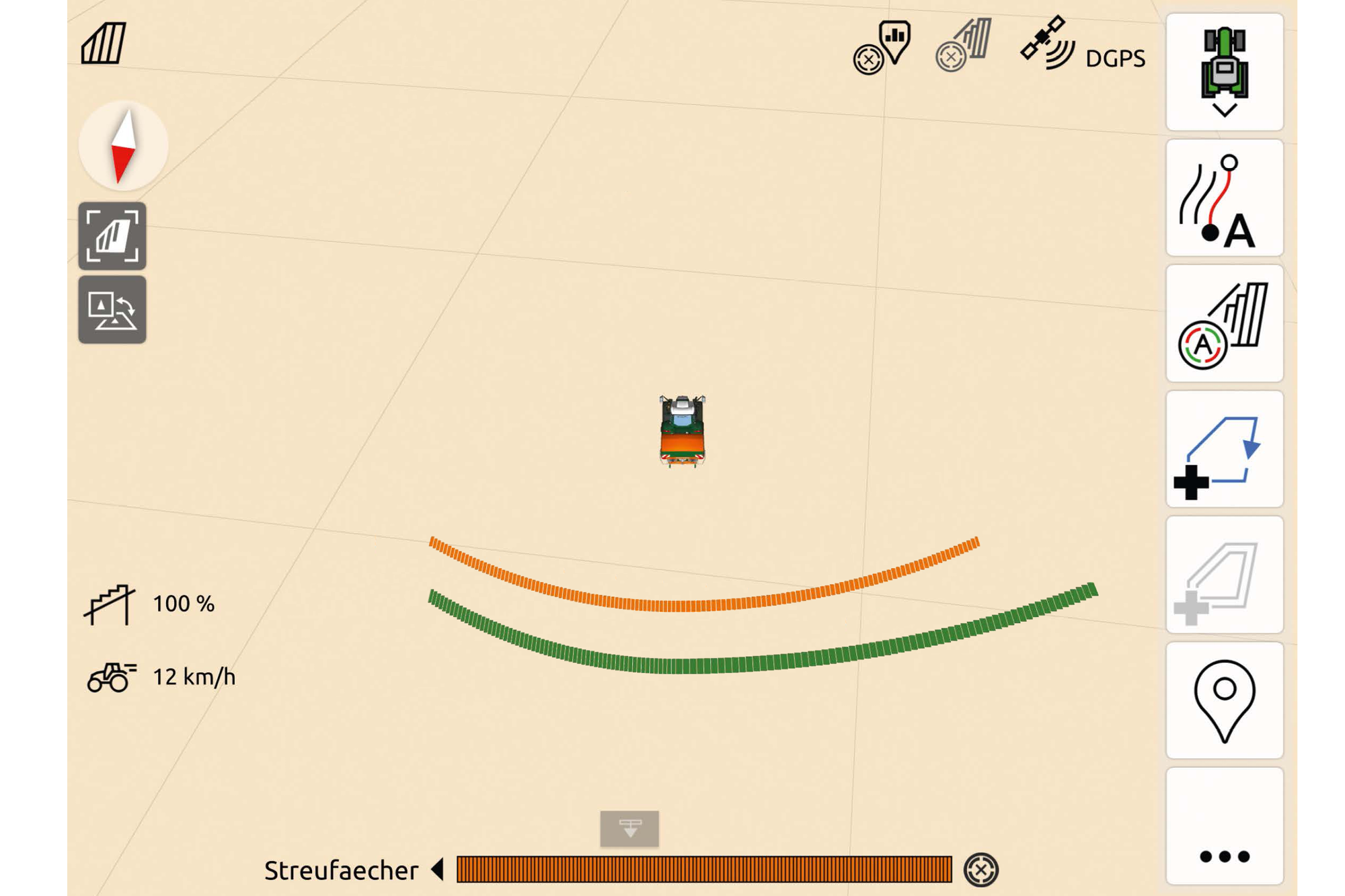 Lors de l’application, le conducteur active le scénario enregistré avant et l’épandeur d’engrais réalise automatiquement les processus de commutations sauvegardés. GPS-ScenarioControl permet une utilisation précise de l’engrais qui préserve les ressources, car les différents procédés d’épandage en limite sont exécutés sur l’emplacement adéquat. Une application conforme à la législation est ainsi parfaitement garantie, même avec les conducteurs suivants. En outre, le conducteur peut s’orienter à l’aide de l’itinéraire préenregistré et optimisé.