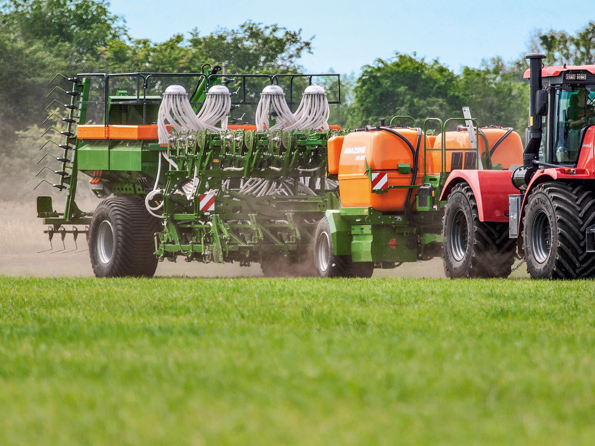 Le poids est réparti de façon optimale sur le sol par le biais des deux grands pneus 800/45/26,5, le sol est donc préservé. L’attelage de l’unité d’engrais liquide traînée Carts au tracteur est réalisé en fonction des besoins par les bras d’attelage inférieurs de cat. 3, 4 ou K700, par un anneau d’attelage ou par une boule d’attelage, mais aussi à l’arrière sur le semoir traîné. Pour une répartition optimale des masses et pour améliorer la traction du tracteur, le timon est lesté en standard de masses supplémentaires. Pour faciliter l’attelage et le dételage, le timon est équipé en standard d’un vérin hydraulique pour aligner la machine, mais aussi d’un rangement pour les flexibles.