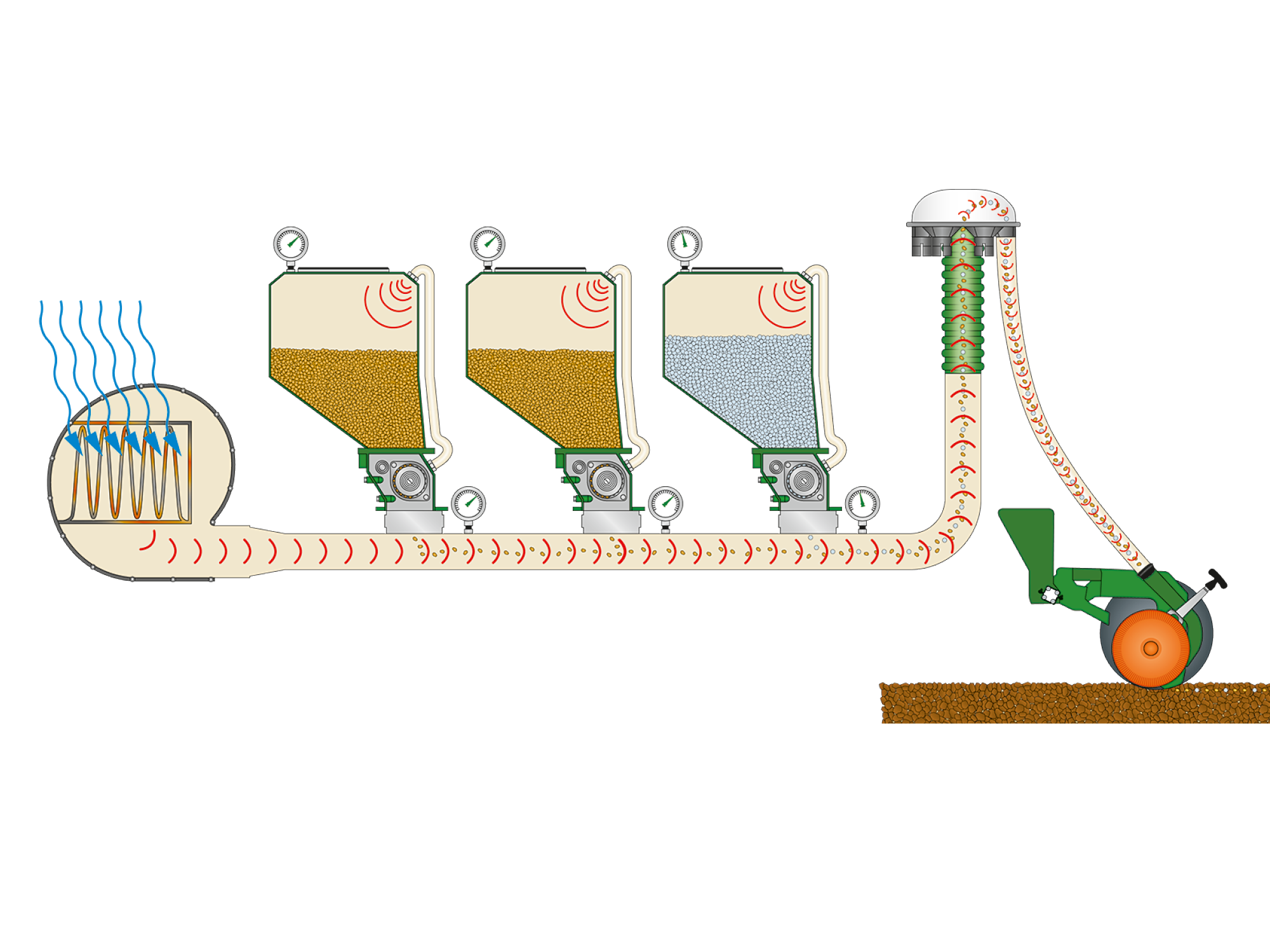 Afin d’obtenir une pression d’huile suffisamment élevée, même derrière les tracteurs dont la puissance hydraulique est limitée et de garantir ainsi un débit d’huile suffisant pour la turbine hydraulique, AMAZONE propose en équipement spécial, un système hydraulique de bord avec réservoir d’huile sur le semoir et une pompe hydraulique séparée. Elle peut être montée rapidement et simplement sur la prise de force du tracteur.