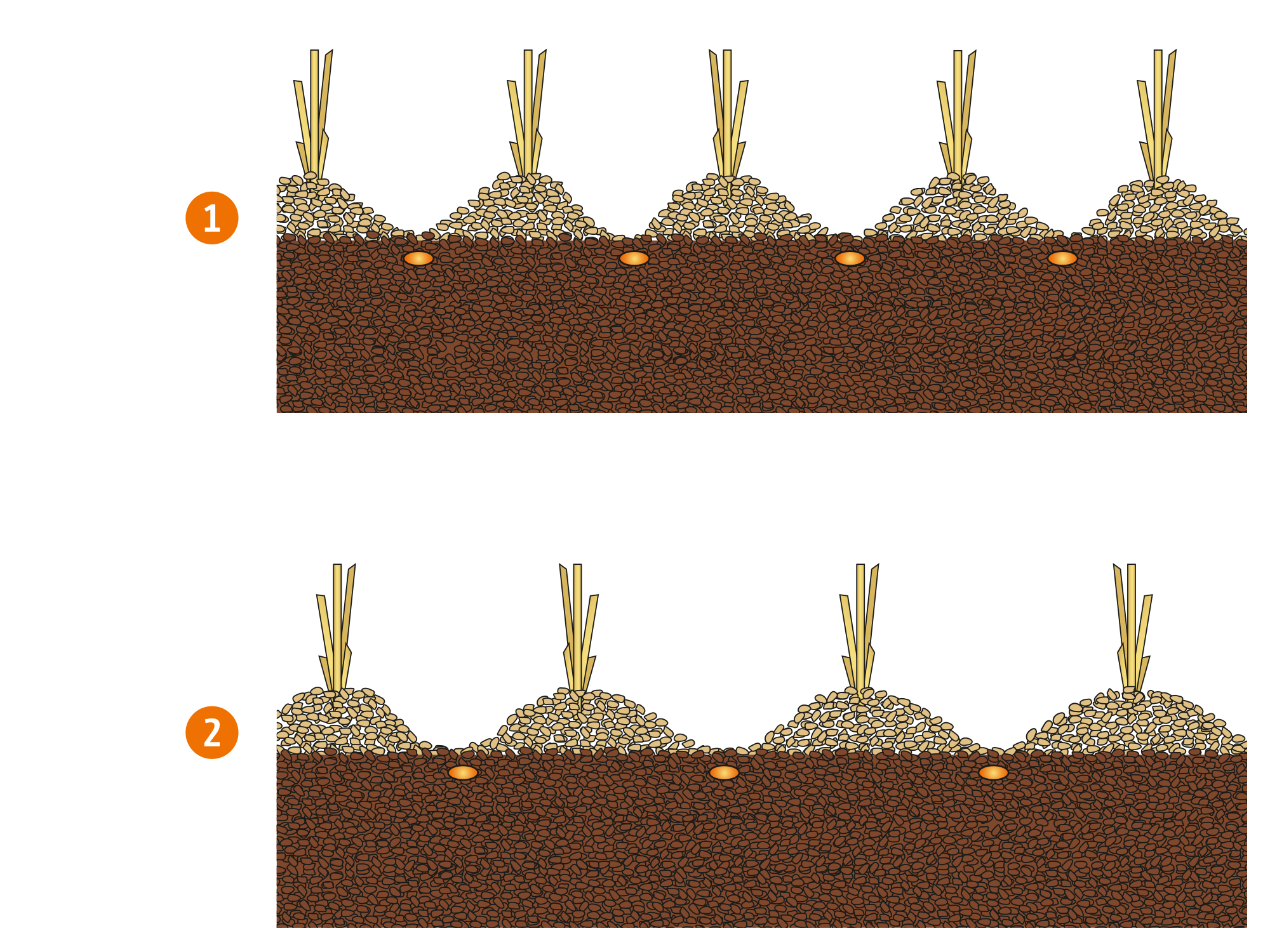 - Possibilité de régulation mécanique des adventices grâce à un écart des rangs de 25 cm