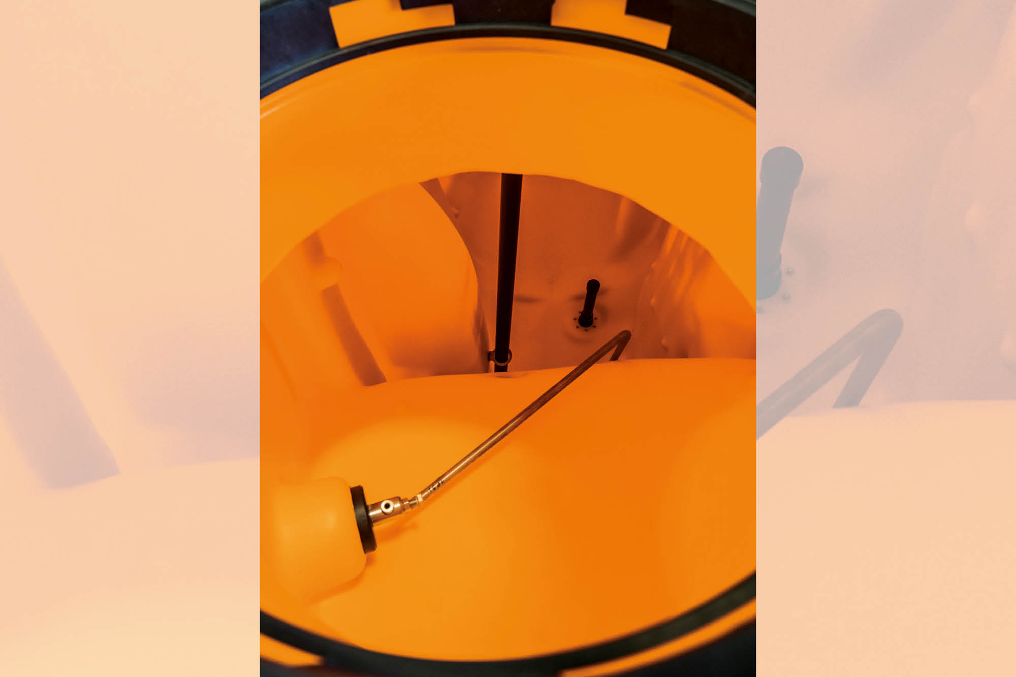 Le flux de remplissage de la cuve, qu’il soit réalisé par aspiration, ou sous pression arrive à proximité du fond de cuve. La formation de mousse est ainsi évitée de façon efficace pendant le remplissage. Pour une puissance d’agitation intensive et pour éviter les dépôts, l’organe agitateur est positionné directement au fond de la cuve. La buse de nettoyage intérieur, la purge d’air de la cuve et le couvercle facile à ouvrir sont positionnés sur la partie supérieure.