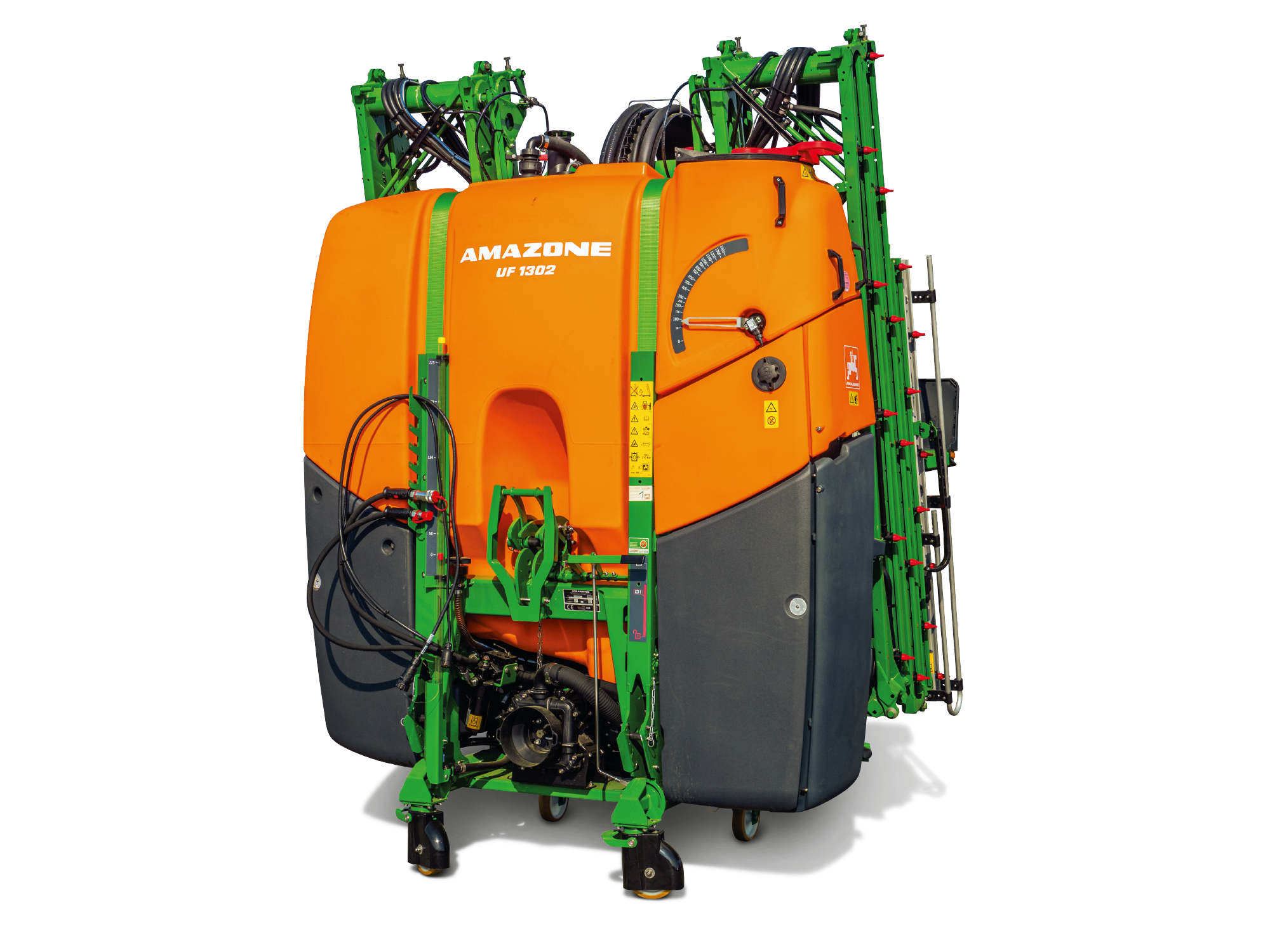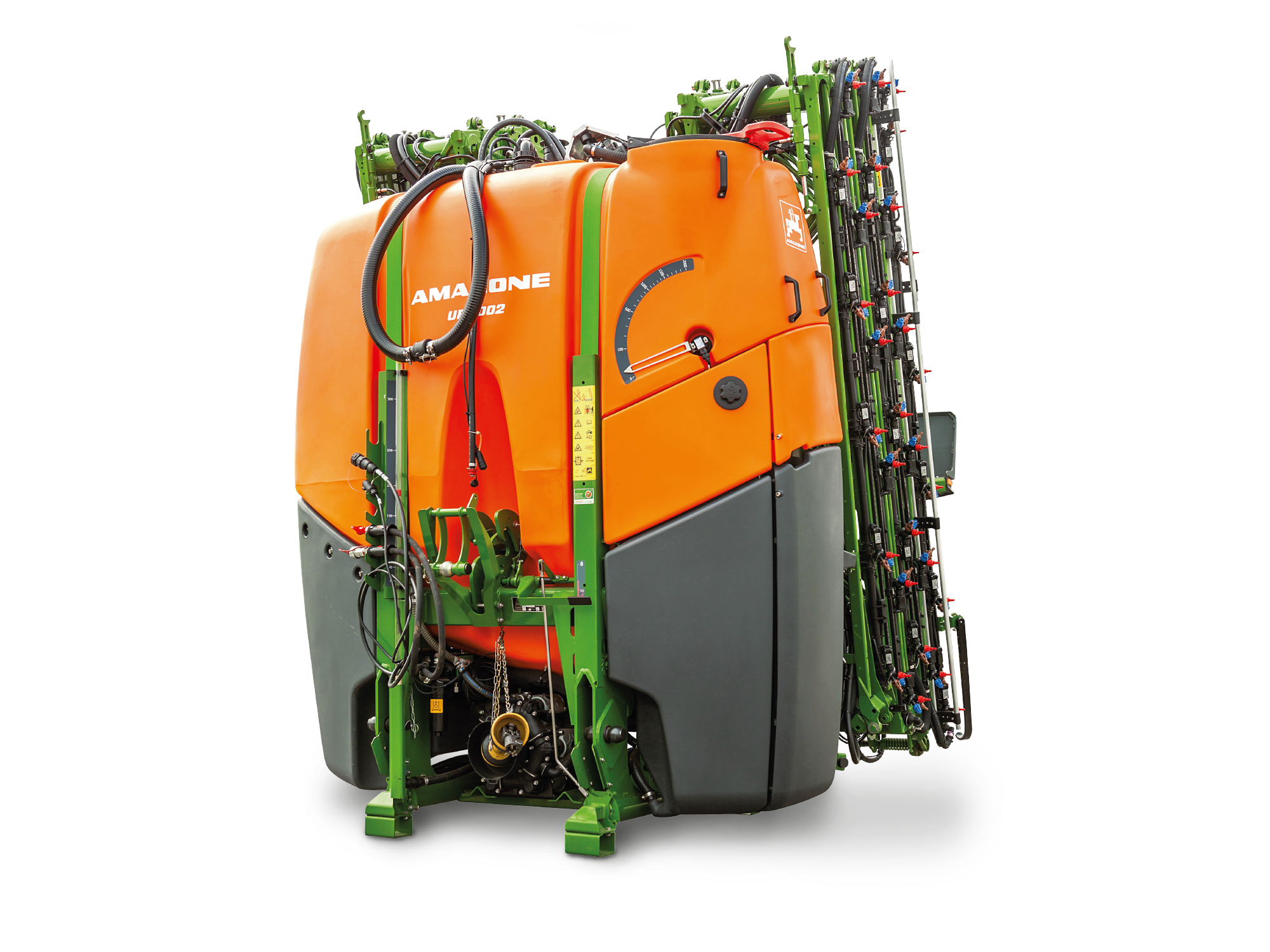 Le pulvérisateur porté UF 02 est disponible avec des volumes de cuve de 1 000 l, 1 300 l, 1 600 l et 2 000 l. La cuve en polyéthylène de forme spéciale est intégrée dans le châssis principal avec un centre de gravité optimisé. Les avantages de cette cuve résident dans les parois intérieures et extérieures absolument lisses, le design intérieur arrondi et l’évacuation logée tout au fond de la cuve. Le nettoyage de la cuve est de ce fait rapide et efficace avec un minimum de volumes résiduels.