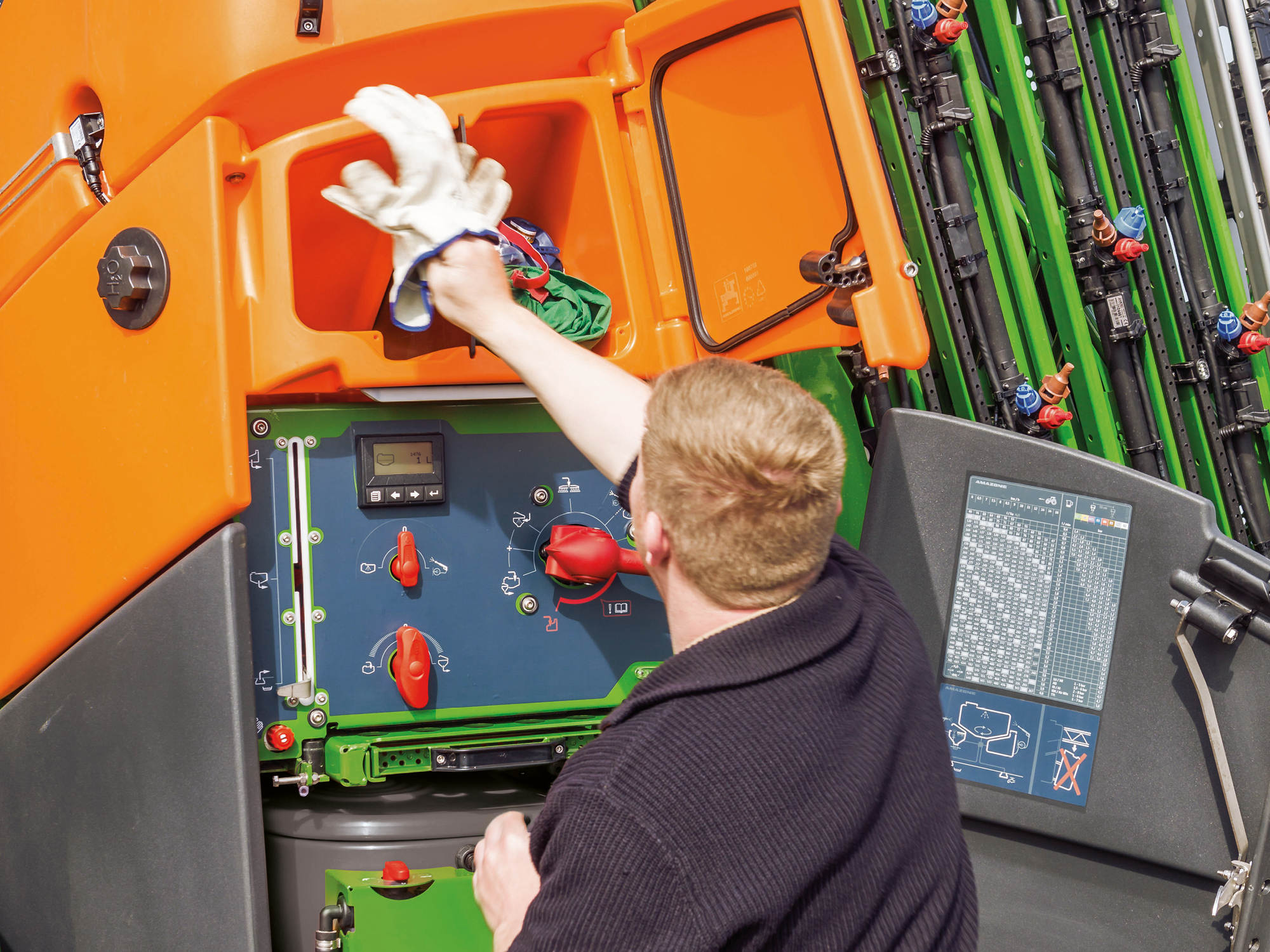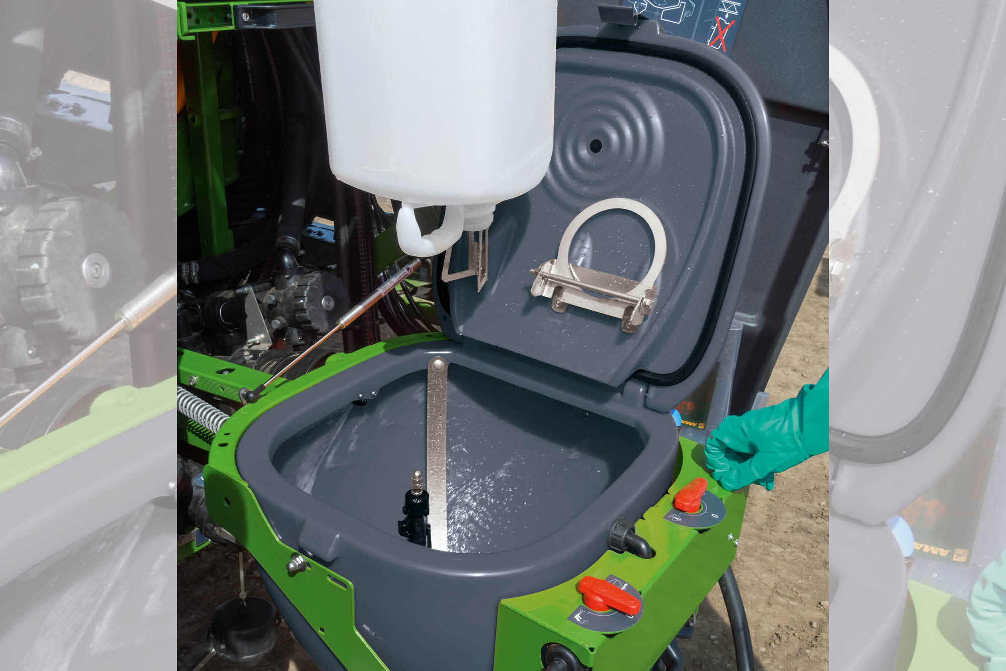 Après l’application, le Pack Confort permet un nettoyage entièrement automatique piloté depuis la cabine du tracteur.