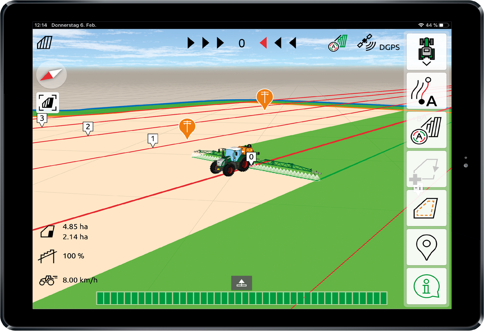 Avec la coupure automatique de tronçons GPS-Switch, AMAZONE propose une coupure de tronçons entièrement automatique, basée GPS pour tous les terminaux AMAZONE et les épandeurs d’engrais, pulvérisateurs ou semoirs compatibles ISOBUS.