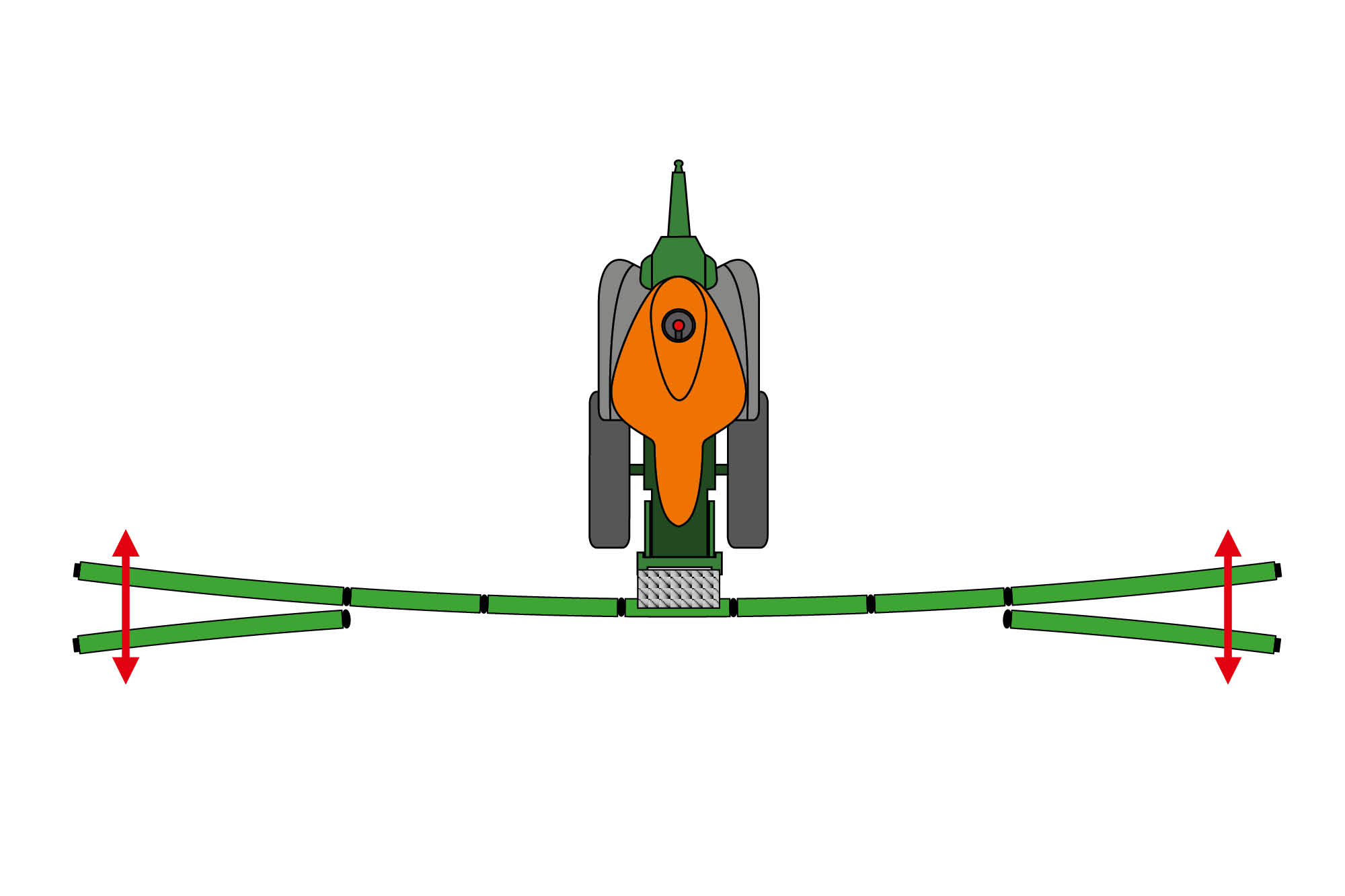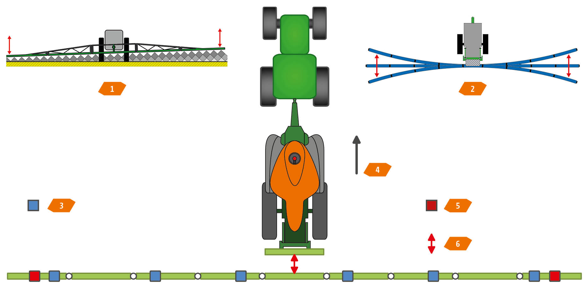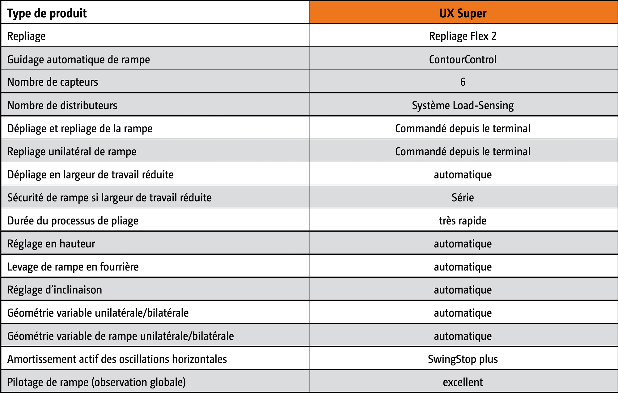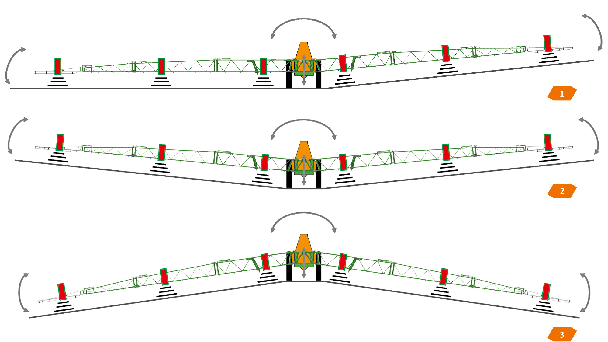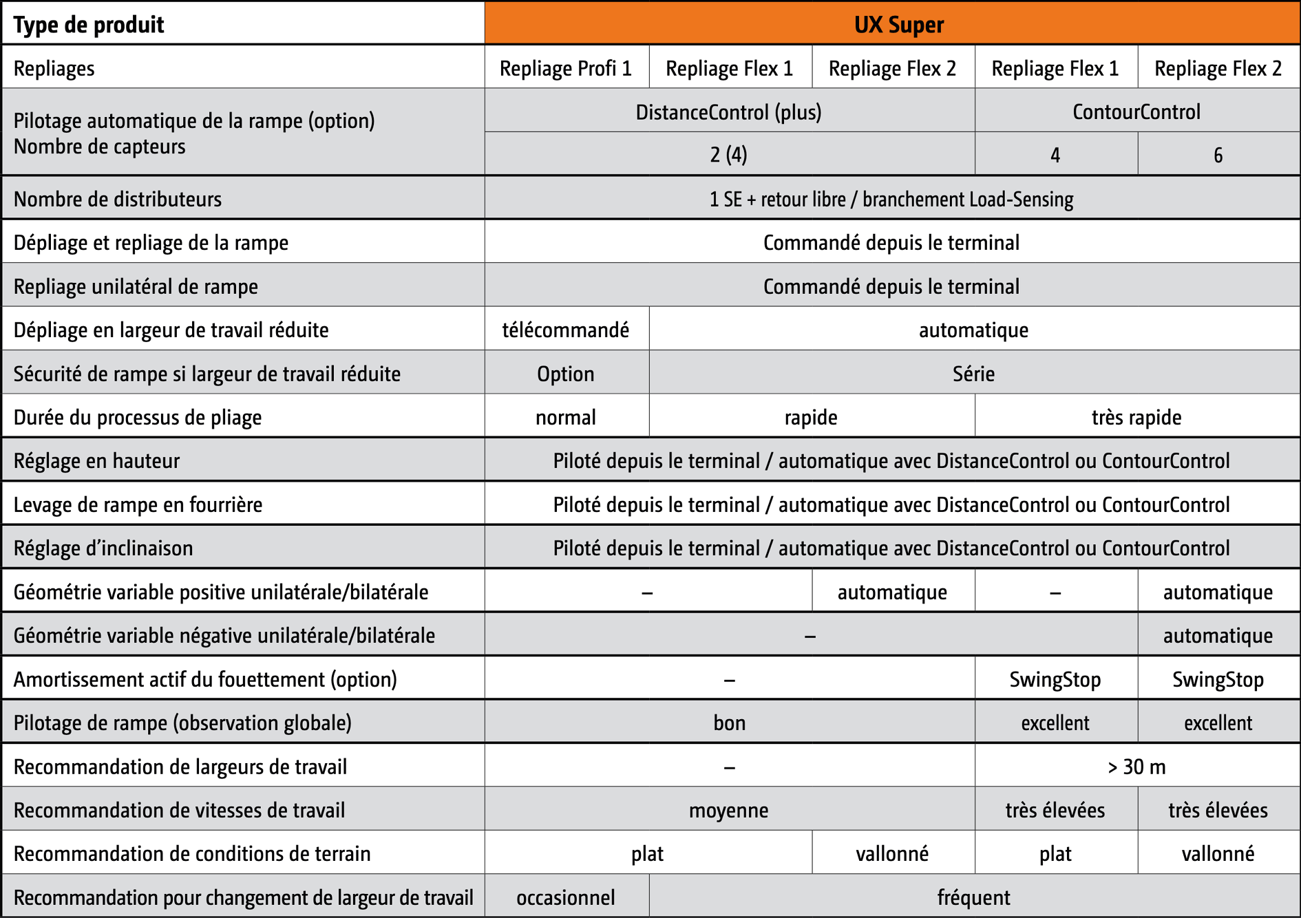 La base de ce nouveau suivi de rampe est un système hydraulique à réaction rapide et 4 capteurs ou même 6 capteurs qui, associés au repliage Flex 2, permettent une géométrie variable positive et négative automatique.