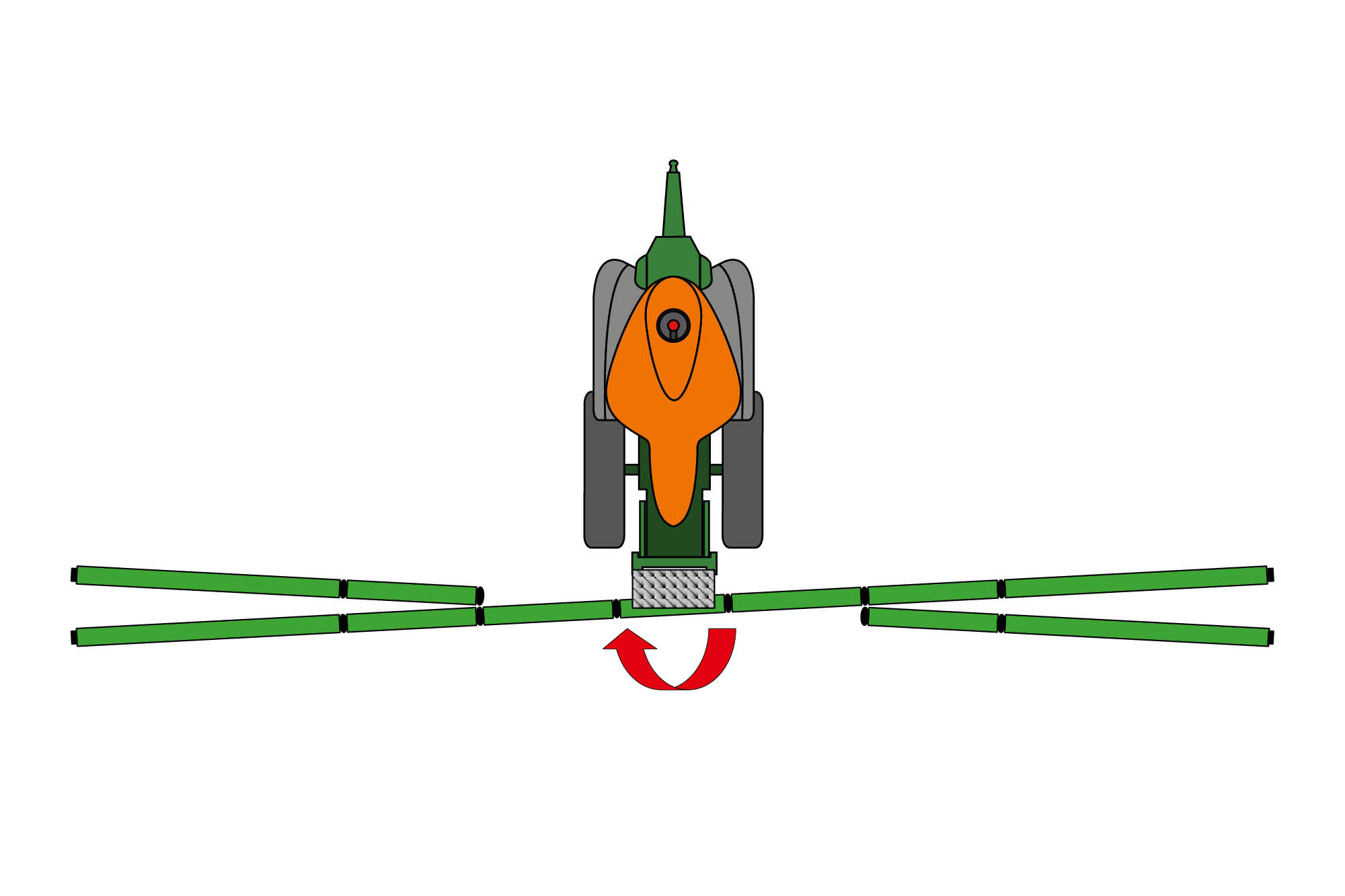 Pour adapter également la position horizontale de la rampe aux exigences croissantes, telles que les largeurs de travail plus importantes et les vitesses d’avancement plus rapides, AMAZONE propose en équipement spécial pour la commande de rampe ContourControl, la compensation active des fouettements SwingStop. La rampe subit des sollicitations énormes dans le sens horizontal à cause des inégalités du terrain, des virages, des accélérations-décélérations et des vitesses de travail croissantes. Cela peut entraîner une oscillation des bras de la rampe et donc une influence négative sur la répartition longitudinale de la pulvérisation aux extrémités de rampe.