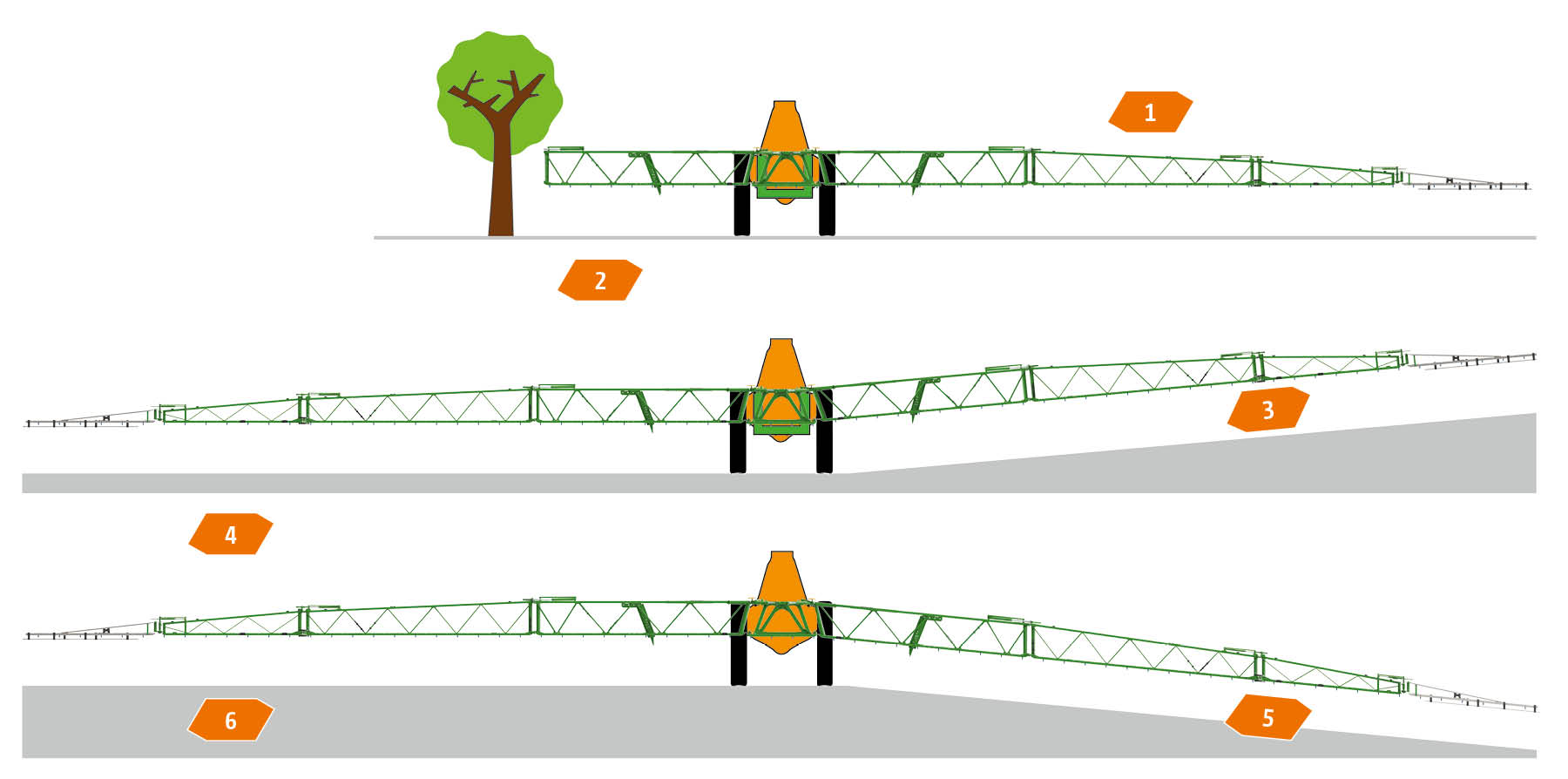 Suivi actif de la rampe ContourControl et compensation des fouettements SwingStop pour des largeurs de travail jusqu'à 36 m