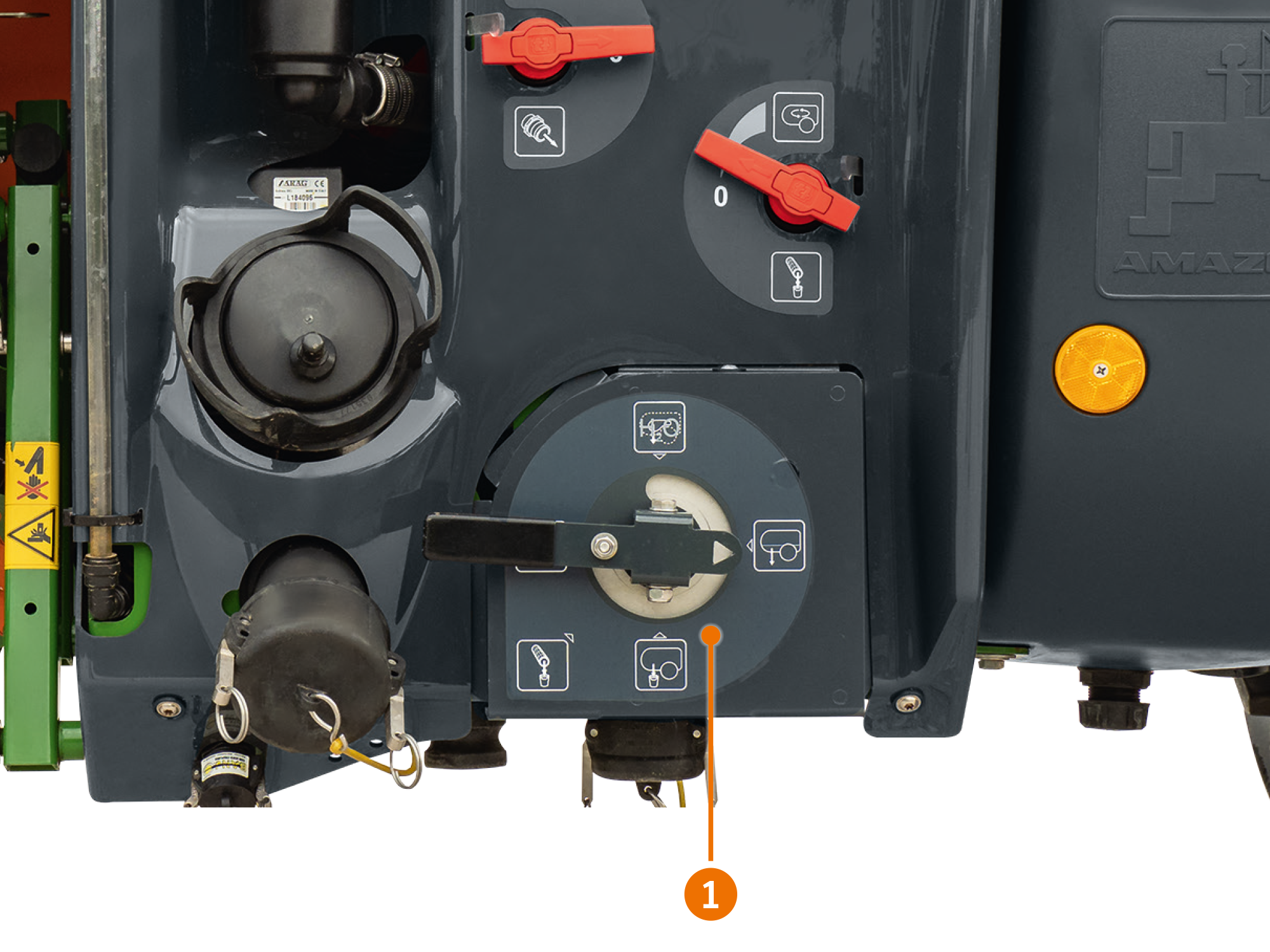 L’agitateur hydraulique est déconnecté en fonction du niveau de remplissage pour éviter que le produit phytosanitaire mousse et pour faciliter la pulvérisation des reliquats. La bouillie en surplus est toujours ramenée, via le retour, dans la zone d’aspiration. Une dilution accidentelle de la bouillie est donc exclue. Les buses de nettoyage intérieur activées successivement assurent un nettoyage parfait. Le pack Confort garantit automatiquement un rinçage de tous les agitateurs.