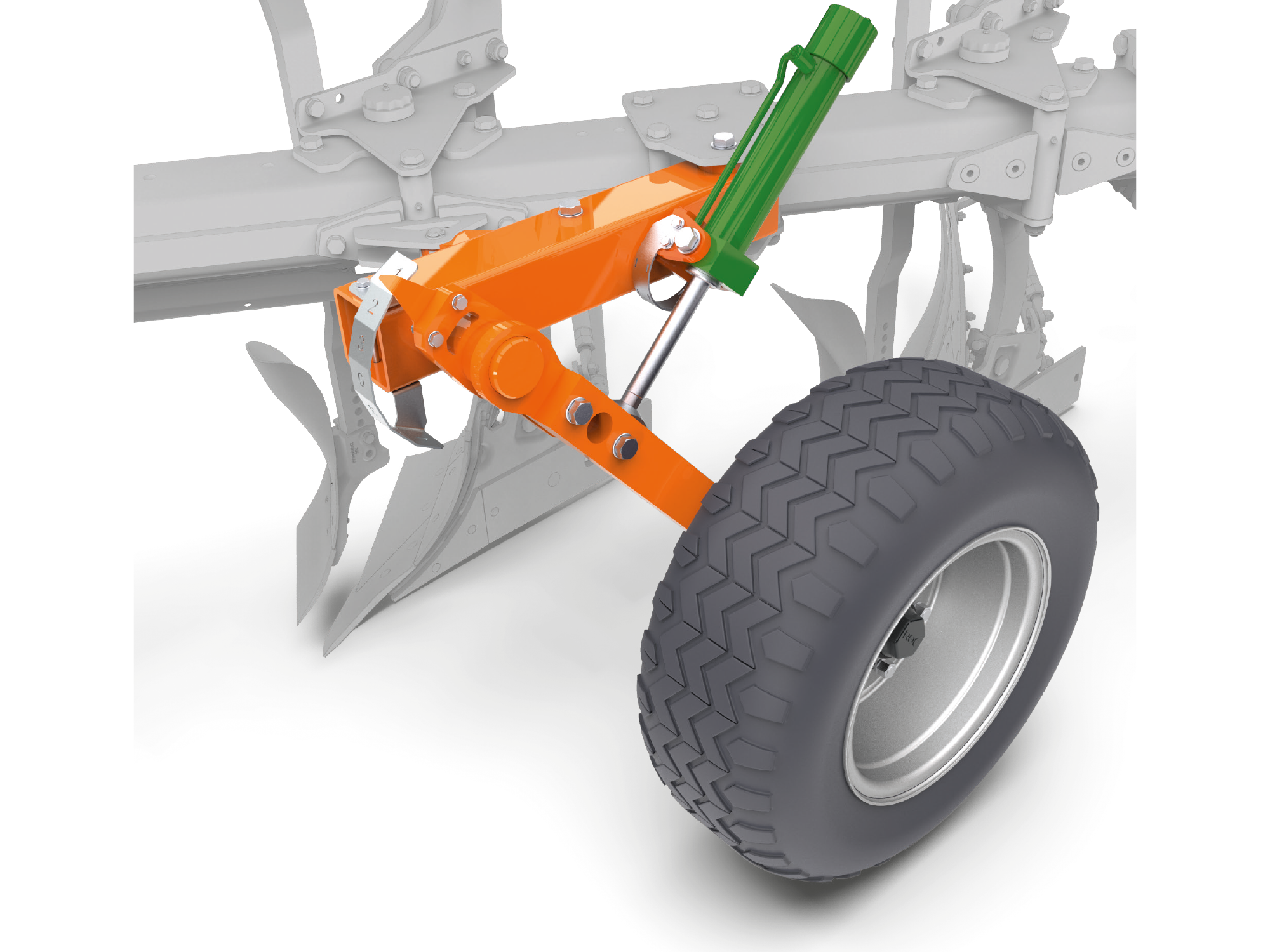 La Teres peut être équipée de roues de contrôle mécaniques ou hydrauliques. Alors que les roues mécaniques sont montées latéralement ou à l’arrière, les roues de contrôle hydrauliques sont montées exclusivement latéralement. Le réglage de profondeur est mécanique par le biais de broches ou hydraulique en continu, depuis la cabine pour renforcer le confort, via un distributeur double effet, avec échelle graduée bien lisible.