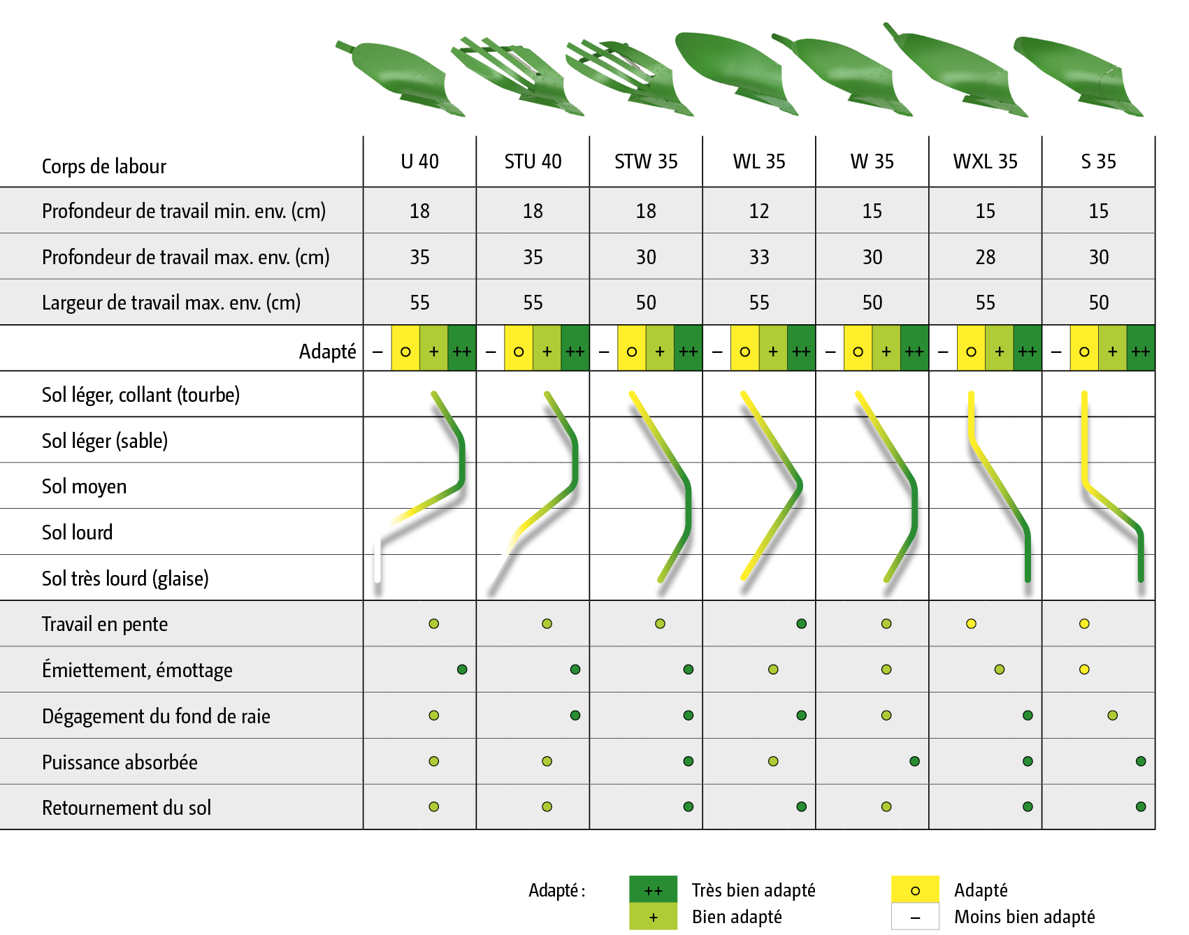 • Peu tirant grâce à la transition lisse entre la pointe et l’étrave de versoir