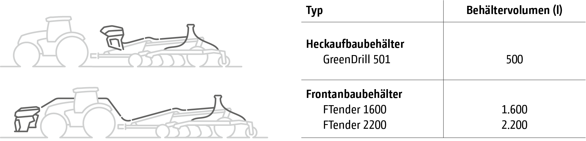 La voie d’alimentation universelle permet de combiner le Ceus avec différents dispositifs de semis. Ainsi, le GreenDrill 501 d’une capacité de 500 l peut être utilisé de la même manière que les trémies frontales ou arrière d’une capacité de 1 600 à 2 200 l. Outre des intercultures, d’autres semences ou des engrais minéraux, comme les microgranulés, peuvent être appliqués.