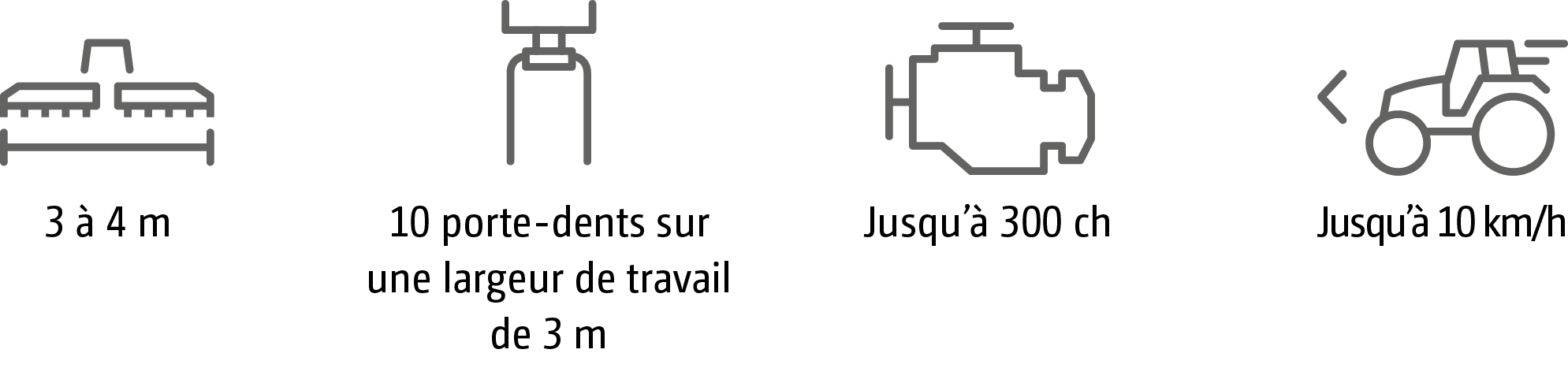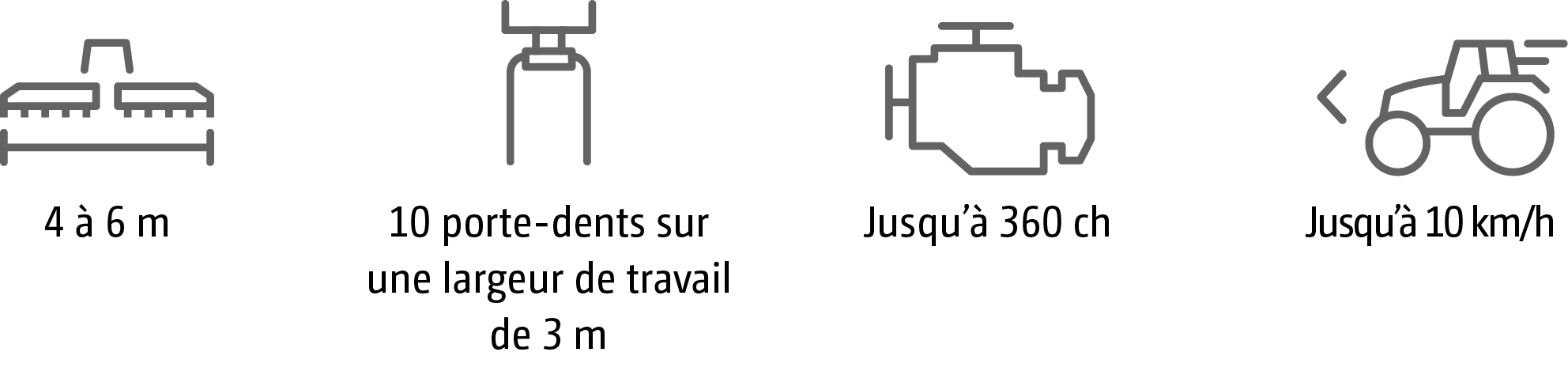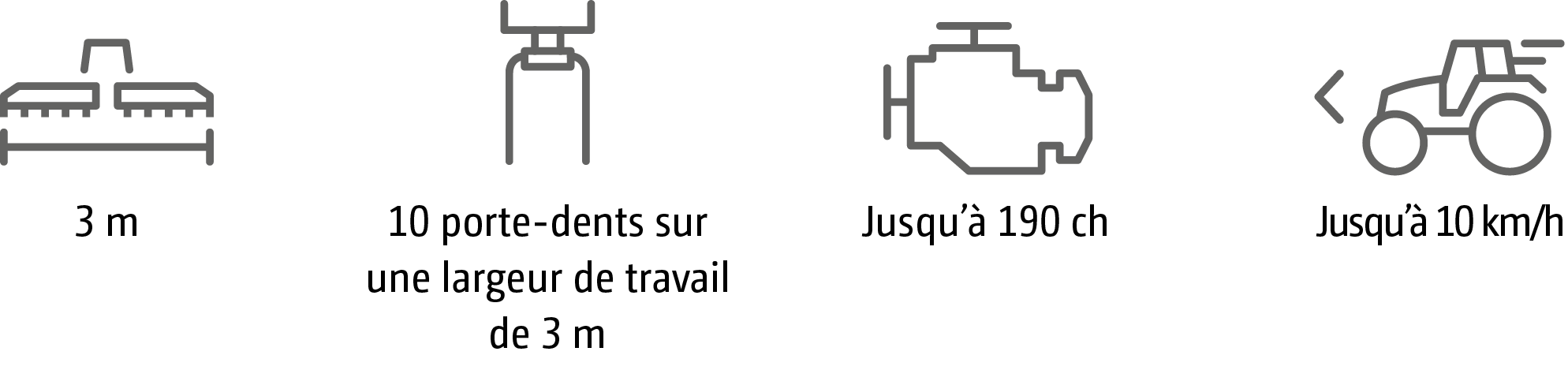 Le cultivateur repliable KG 02-2 avec sa largeur de travail de 4 m, 5 m ou 6 m impressionne par ses rendements horaires exceptionnels. Avec le système Cultimix, le cultivateur rotatif garantit des dégagements importants et une stabilité imbattable.
