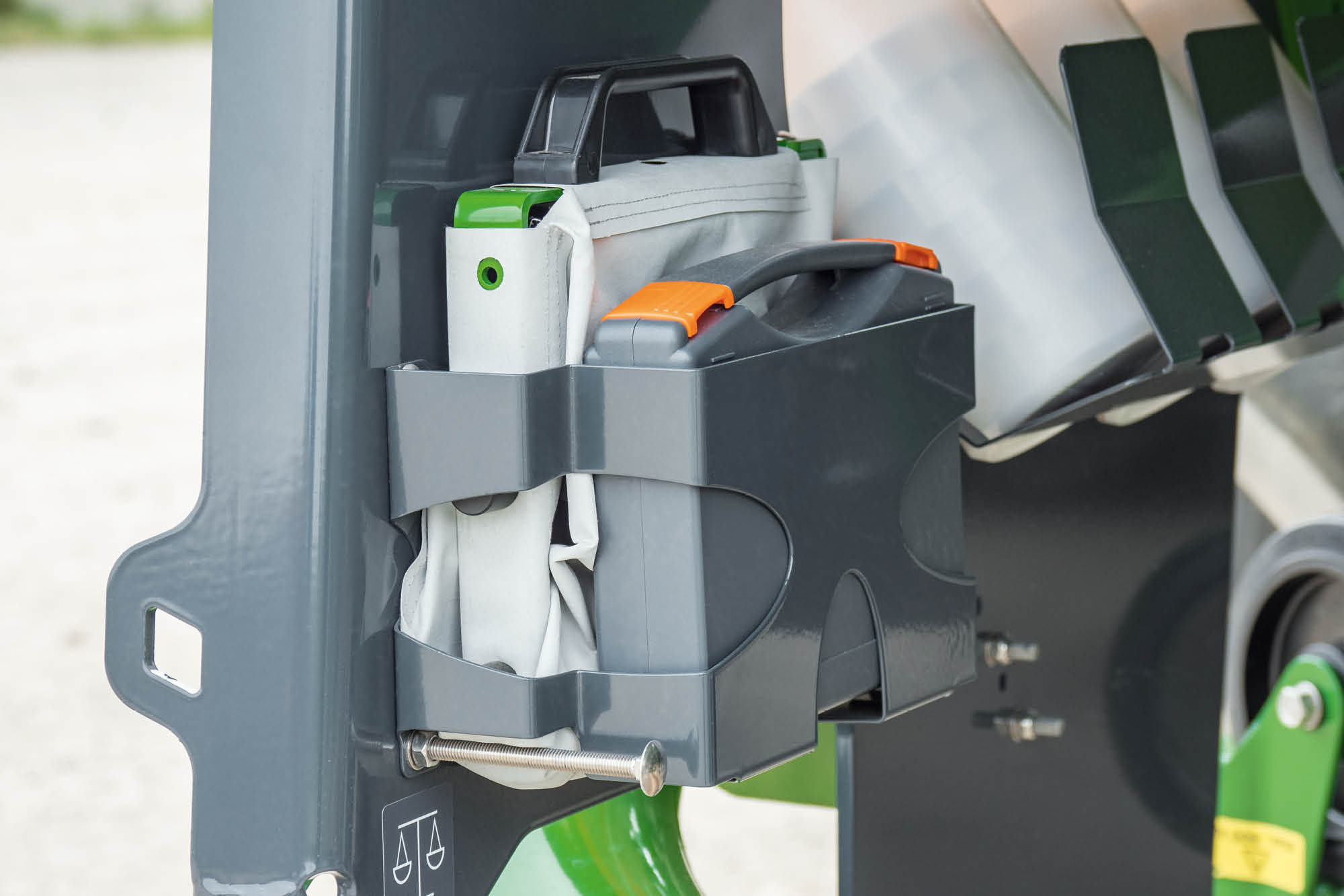 Les accessoires standards, tels que la balance et le sac d'étalonnage, sont rangés en toute sécurité dans la trémie arrière. L’étalonnage est réalisé confortablement sur la machine à l’aide du TwinTerminal.