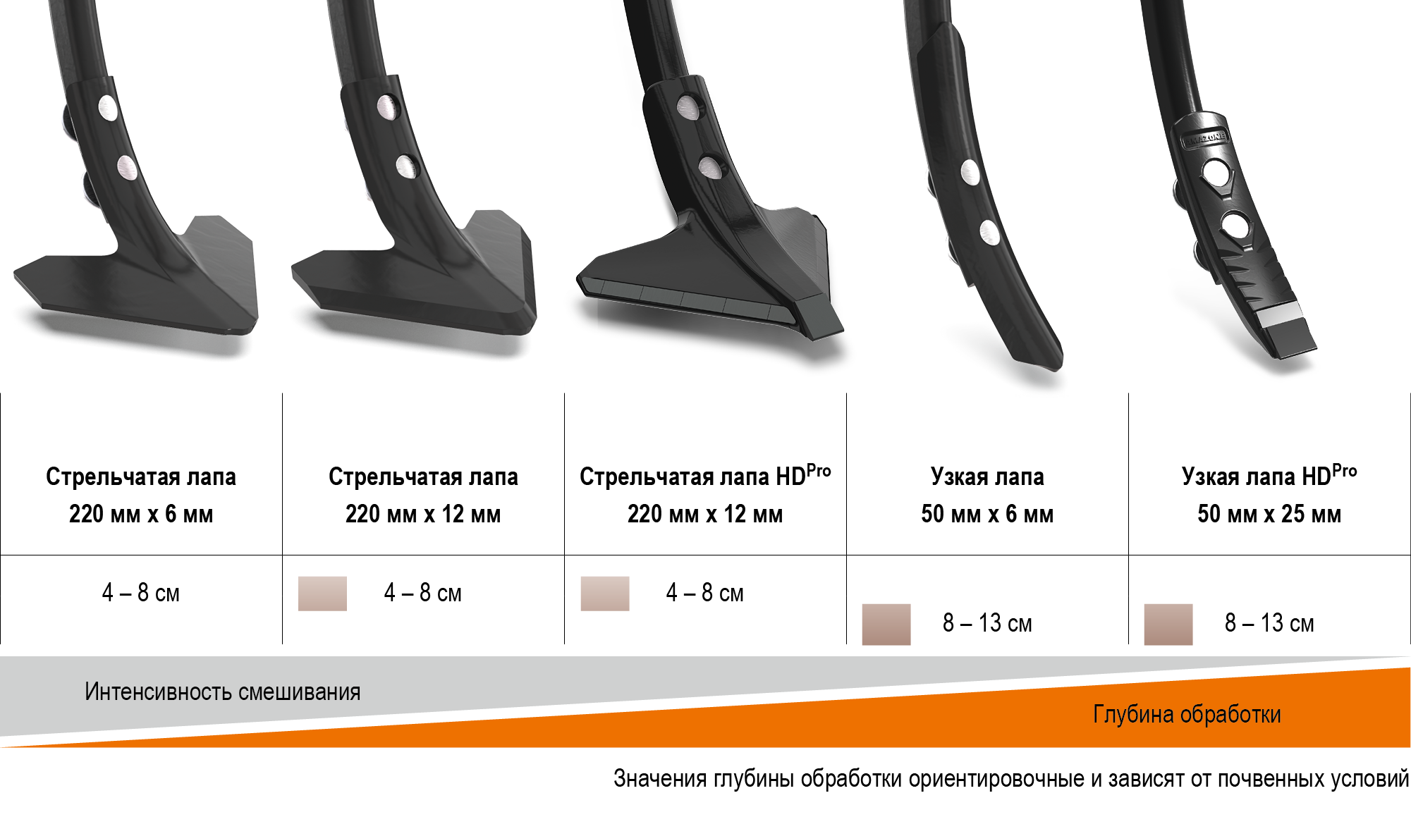 • Узкая лапа в особенности подходит для предпосевной подготовки почвы