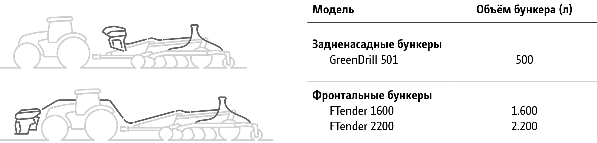 С FTender с объёмом бункера 1.600 или 2.200 л компания AMAZONE предлагает универсальный фронтальный бункер для универсального использования в комбинации с посевной техникой и почвообработкой.