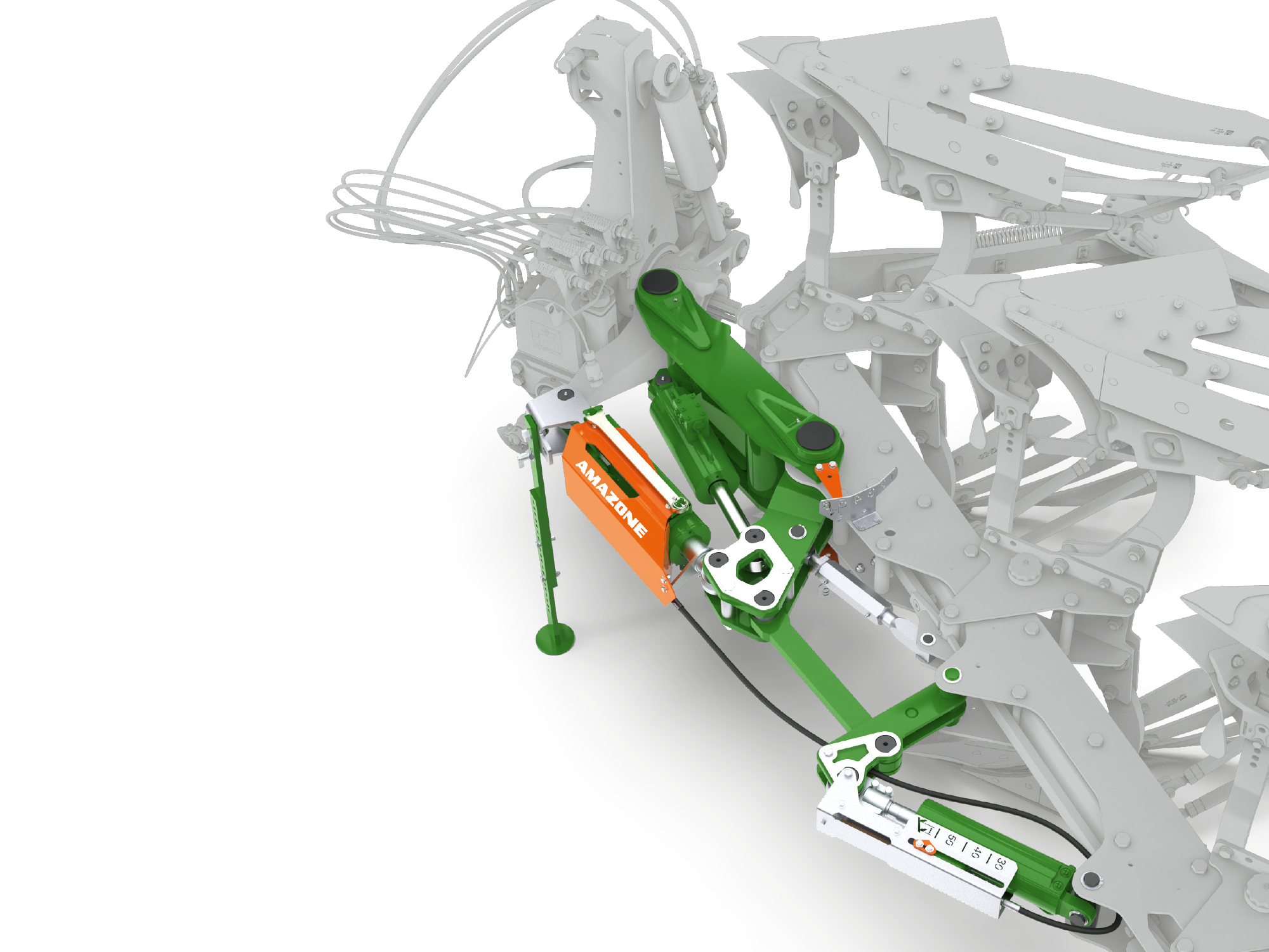 За счет AutoAdapt, при изменении общей ширины захвата автоматически настраивается ширина первой борозды. Благодаря параллелограмму и гидравлическим соединениям между цилиндром ширины захвата и цилиндром первой борозды при любых условиях обеспечивается точный стык. Точная вспашка всвал обеспечивает также идеальную картину обработки. Поскольку точка тяги во время процесса не изменяется, AutoAdapt положительно влияет на расход топлива.