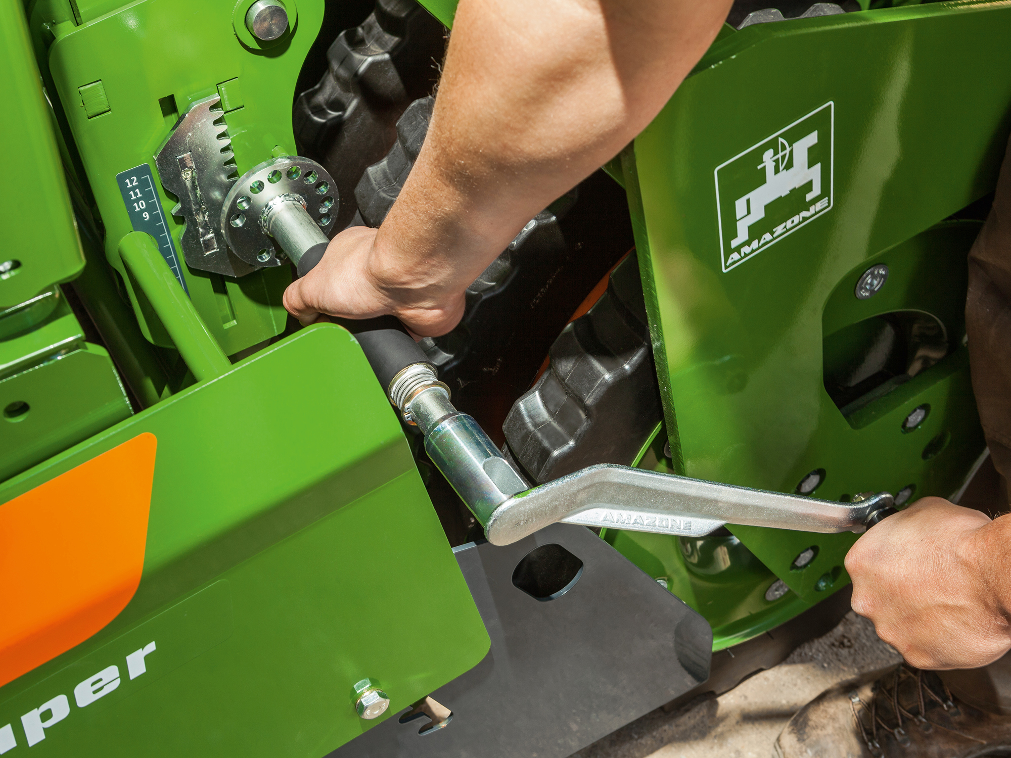При необходимости, например, при более глубокой обработке на разворотной полосе, можно бесступенчато настроить глубину обработки ротационного культиватора, удобно, из кабины трактора. Так можно непосредственно реагировать на различные почвенные условия.