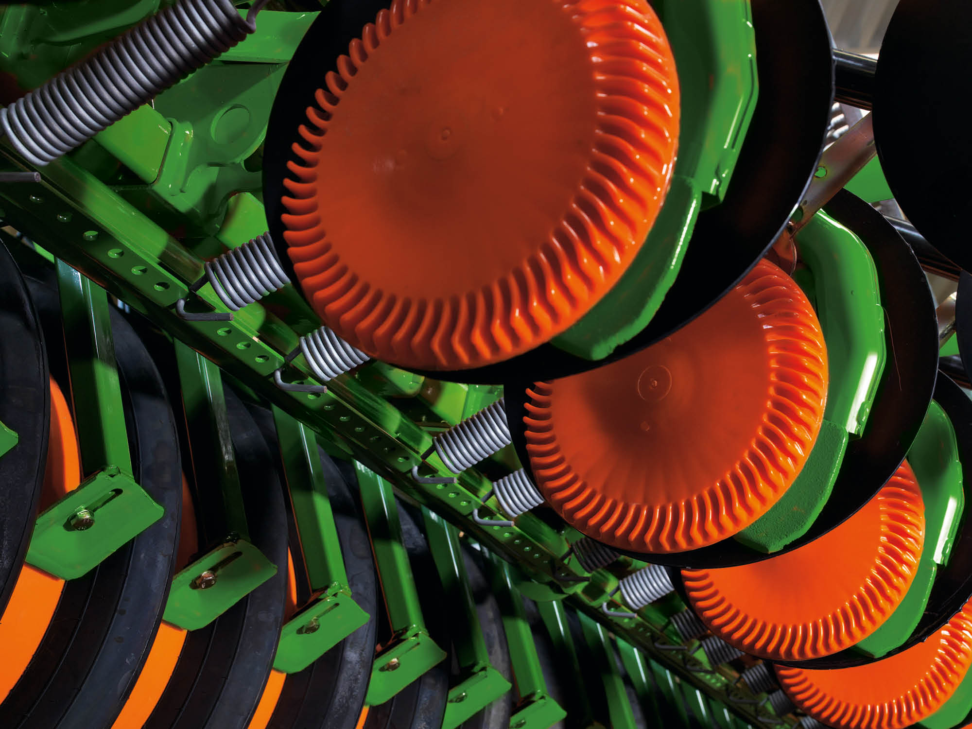 Сошники RoTeC не требуют обслуживания и надежно работают даже при очень большом количестве соломы и растительных остатков. Формирование посевной борозды и оптимальная подача семян в почву происходит, с одной стороны за счёт высевающих дисков, с другой – за счёт бороздообразователя. Опорный каток Control 10 или Control 25 препятствует налипанию земли на высевающий сошник и обеспечивает точное удержание установленной глубины посева. Междурядье составляет 12,5 см. Система сошников RoTeC проверена 1.500.000 раз!