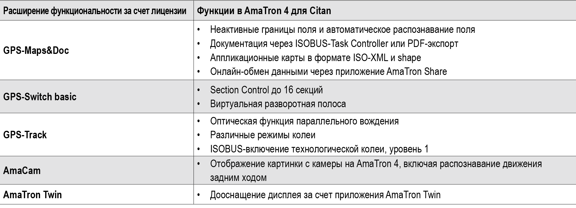AmaTron 4 может с лицензией GPS-Maps&Doc через Task Controller (TC) регистрировать и документировать как данные машин, так и геопроецированные данные. Также возможно применение дифференцированного метода на основе обработки аппликационных карт в форматах shape и ISO-XML.