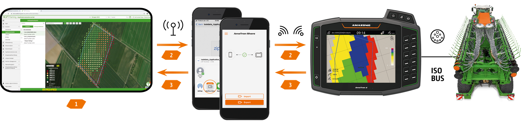 - С помощью приложения AmaTron Share Вы можете легко импортировать задания в формате ISO-XML или формате shape, а также экспортировать обработанные задания в формате ISO-XML или в виде сводки заданий в формате PDF