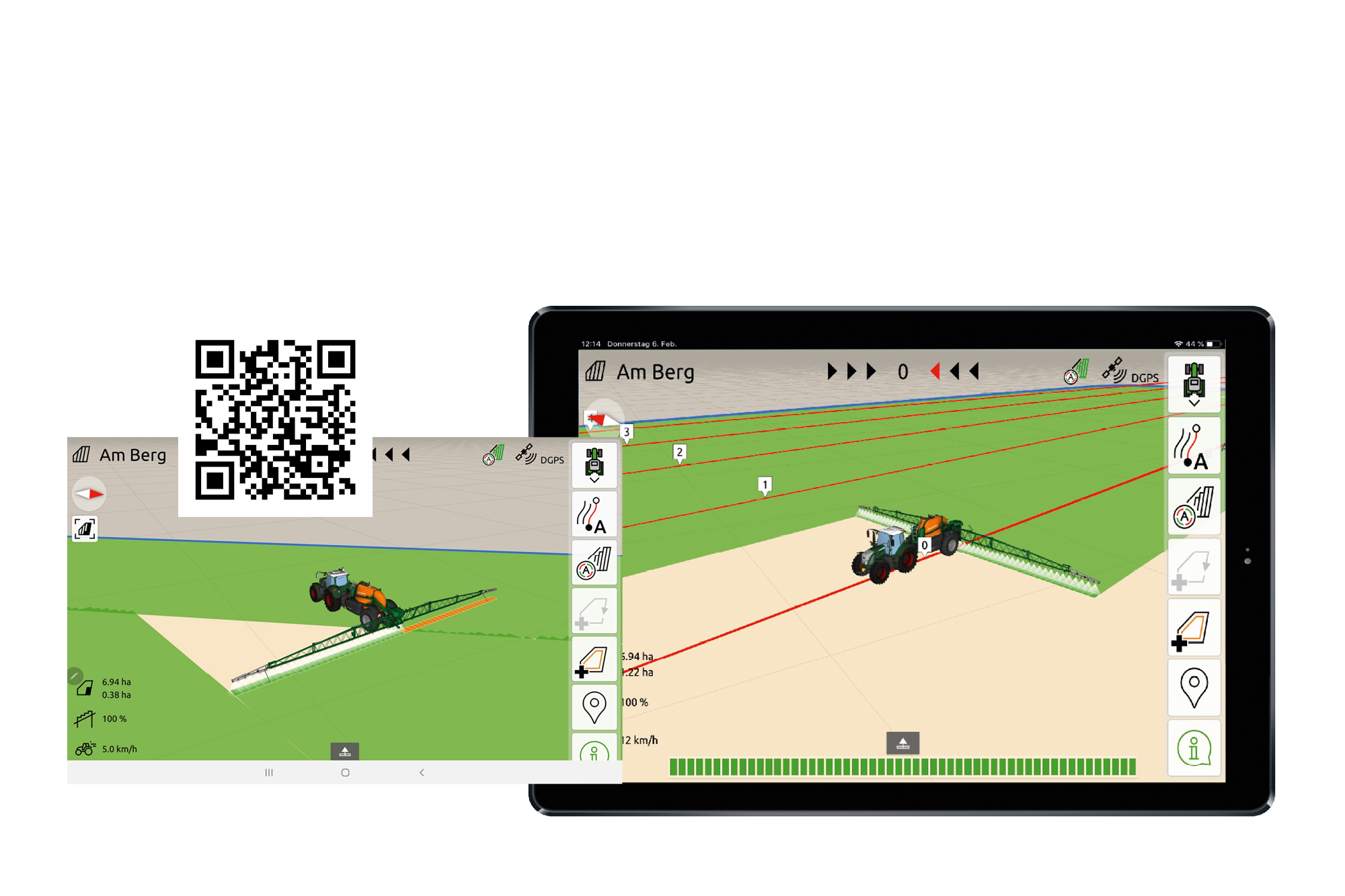 Приложение AmaTron Twin предлагает механизатору больше комфорта во время работы, где GPS-функциями в режиме просмотра карт можно дополнительно управлять через мобильное устройство, например, планшет, параллельно с управлением машиной на AmaTron 4.