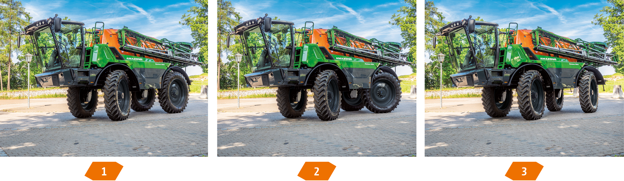 Несмотря на размеры шасси, минимальный радиус разворота Pantera составляет всего 4,50 м при рулении всеми колесами. С такой невероятной маневренностью Вы значительно оптимизируете производительность, прежде всего, на маленьких полях. Переключение между режимом управления всеми колесами и передними колесами осуществляется через терминал шасси AmaDrive 7.0. С функцией «крабовый ход» Вы следуете точно по колее даже на склонах.