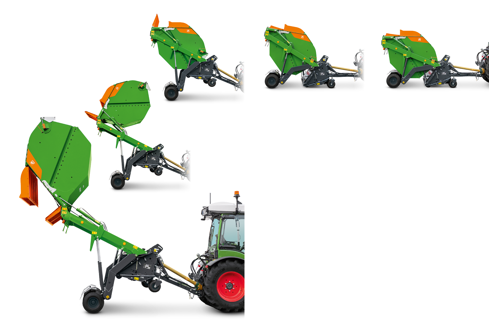 Благодаря системе верхней выгрузки возможна также безопасная выгрузка даже в высокие бункеры. Выгрузку на GH-LT можно провести с высоты до 1,8 м, на GH-S – с высоты до 2,1 м и на GH-S Drive – с высоты до 2,3 м. Точка перегрузки смещена далеко назад, так что возможно надежное заполнение высоких контейнеров – и все это очень комфортно из трактора, с помощью 3 клавиш и электрогидравлической регулировки. Гидравлический фиксатор позволяет проводить безопасную работу у ротора или бункера-накопителя под приподнятым бункером. Обеспечивается также свободный доступ ко всем деталям для очистки.